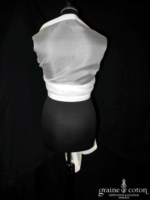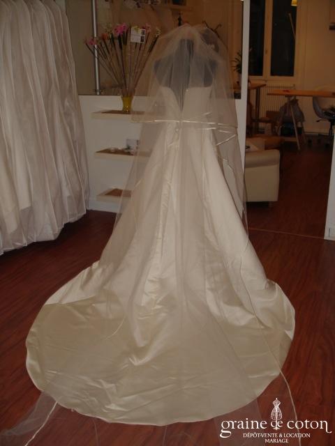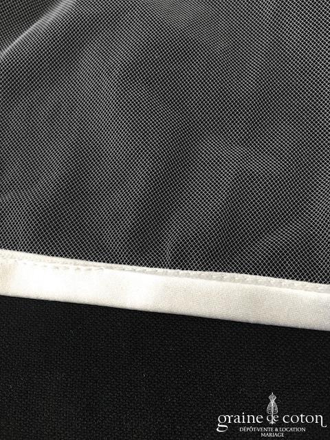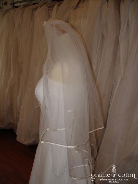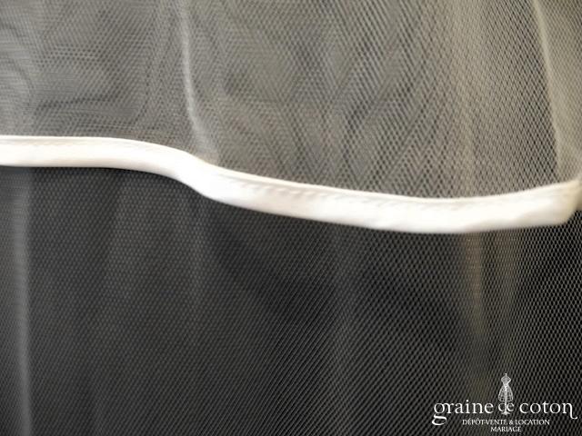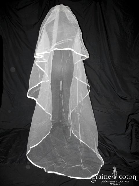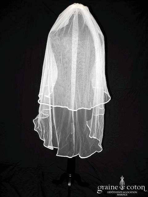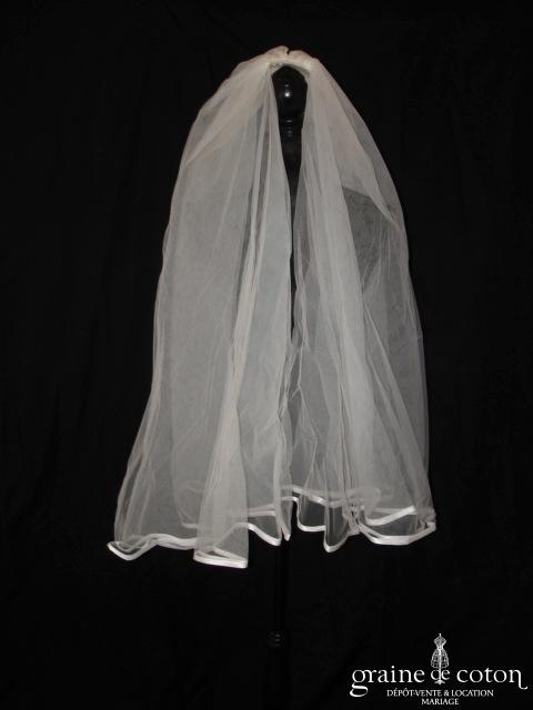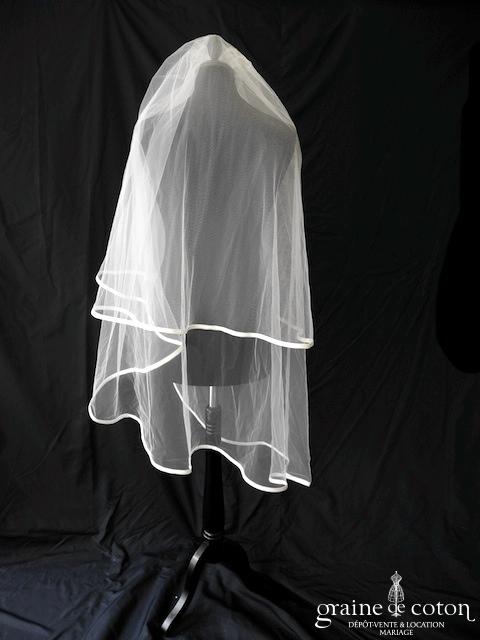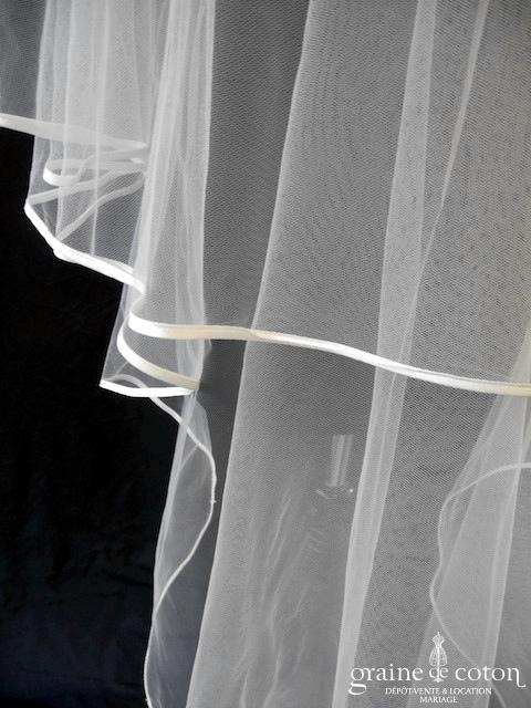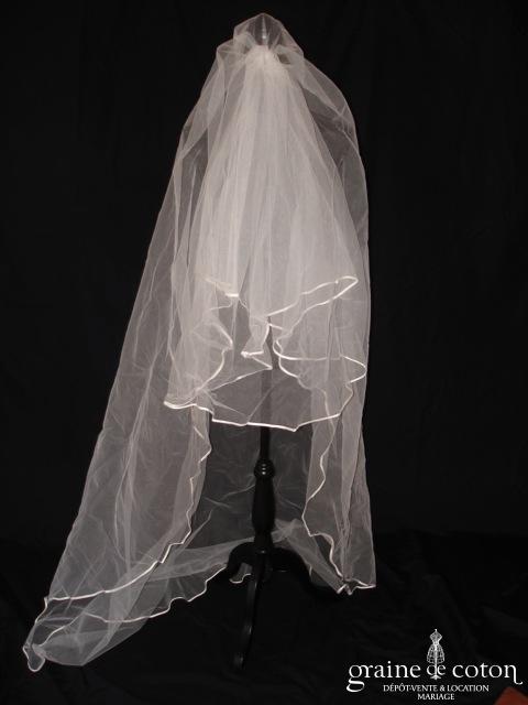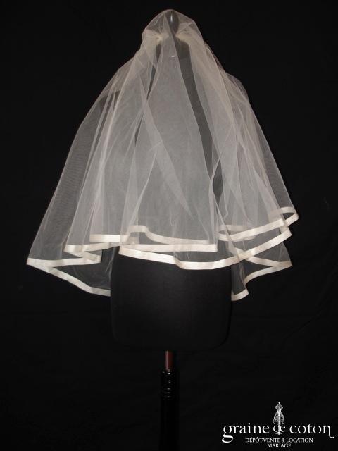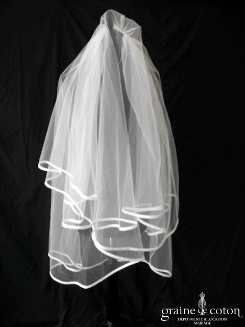 Voile mi long avec 3 rabats de tulle ivoire bordé de biais de satin