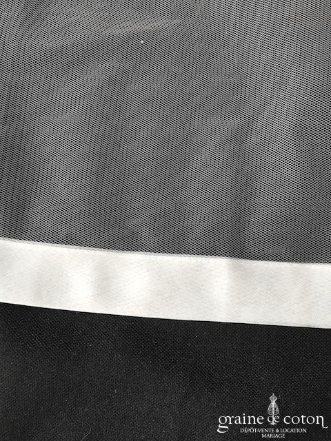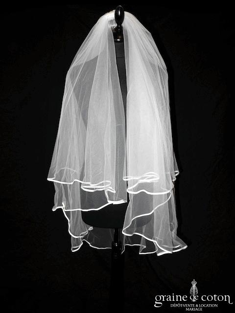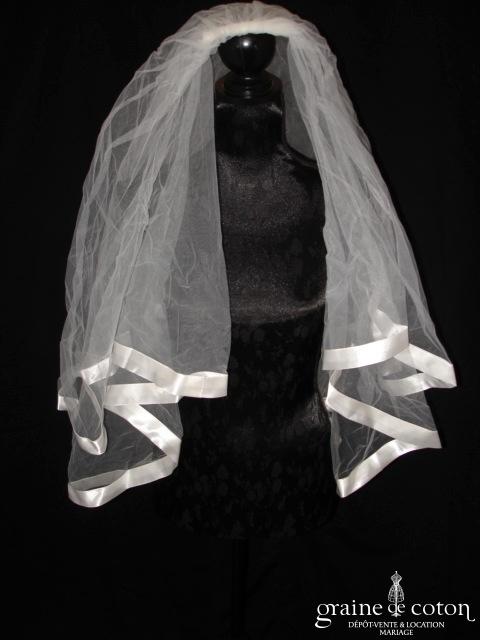 Voile mi long avec 3 rabats de tulle blanc bordé de biais de satin