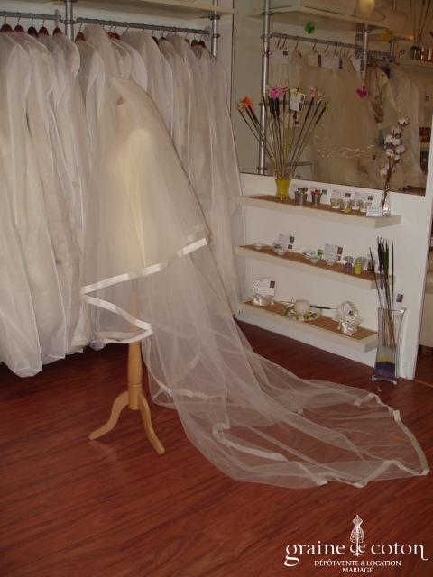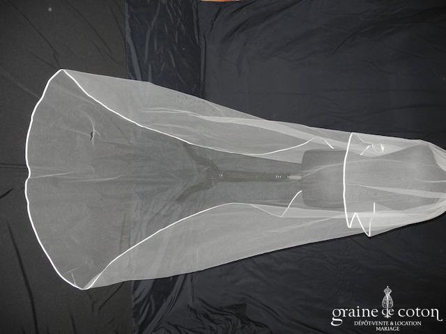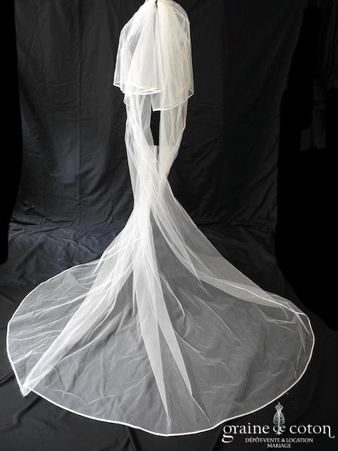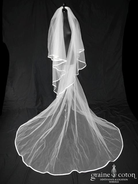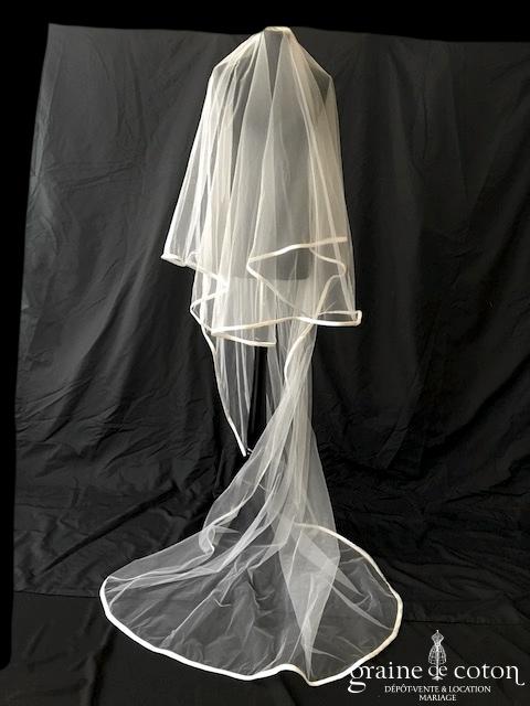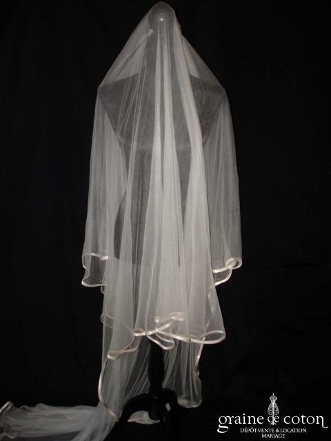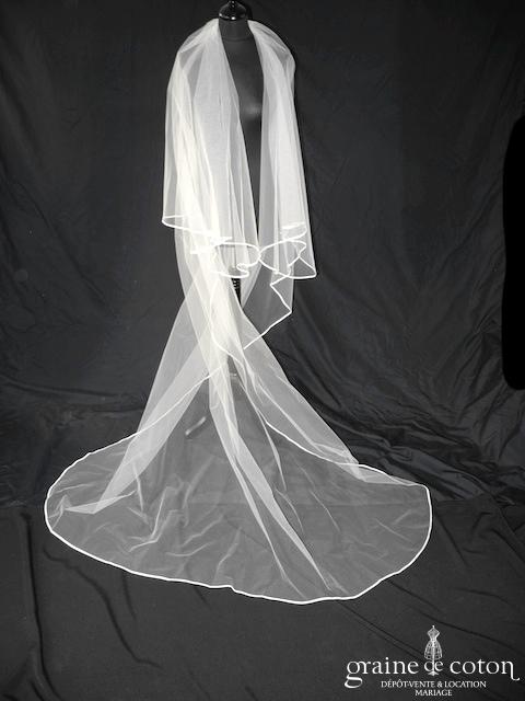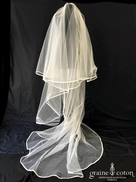 Voile long de 200 cm en tulle ivoire bordé d’un biais de satin