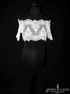 Dépôt du modèle « Alma » ou « First » de Rembo Styling, en crêpe et mousseline ivoire, agrémenté de guipure : seyante et lumineuse. Bohème champêtre. Taille 40, référence 6356. Réassort de pulls …