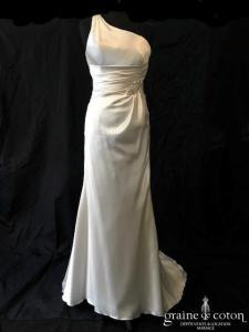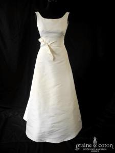 Dépôt du modèle « Elton » de Anna Sarranno, tout en mikado ivoire clair, lumineux et classe : coupe bustier princesse pour une mariée élégante et inoubiable ! Taille 44, référence 6137. …