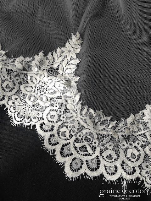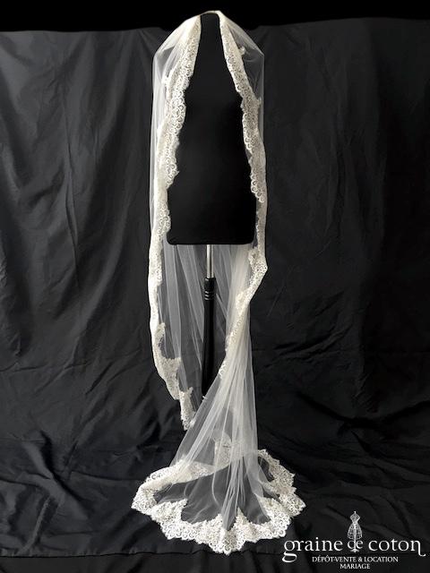 Voile long de 200 cm en tulle ivoire bordé d’un biais de satin