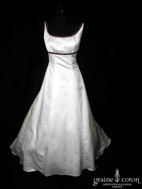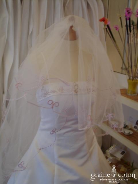 Voile court en tulle ivoire bordé d’un biais bordeaux