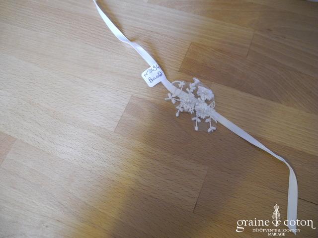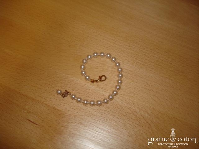 Bracelet en perles de rocailles transparentes et cuivres, idéalement assorti à la robe Julien Thomas référence 1649.