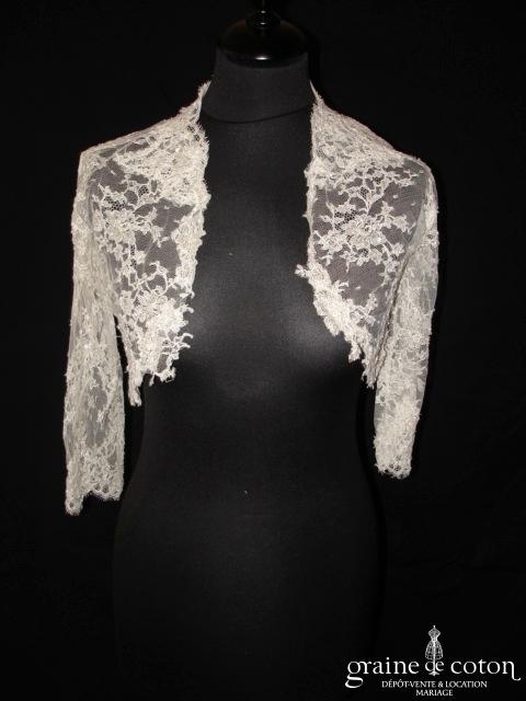Boléro en guipure brodée ivoire à manches 3/4, encolure bateau. Original et élégant.