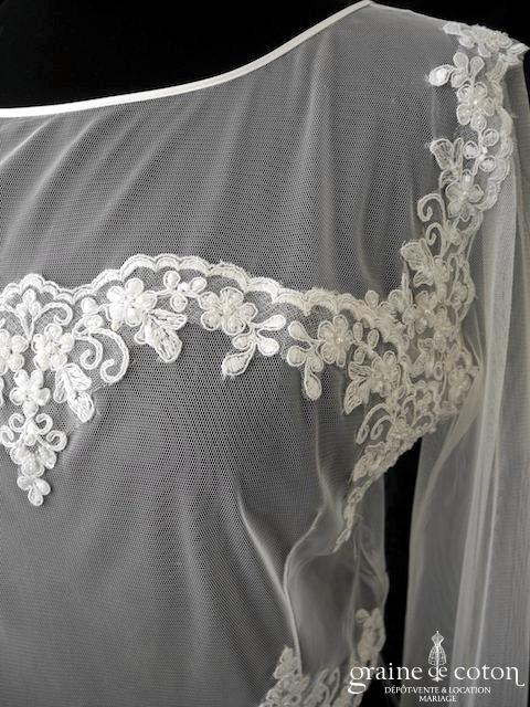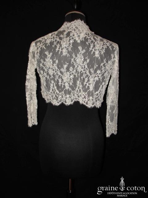 Boléro en guipure brodée ivoire à manches 3/4 et encolure bateau