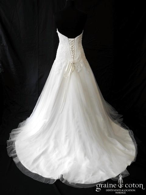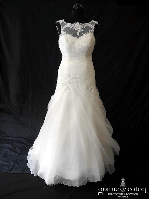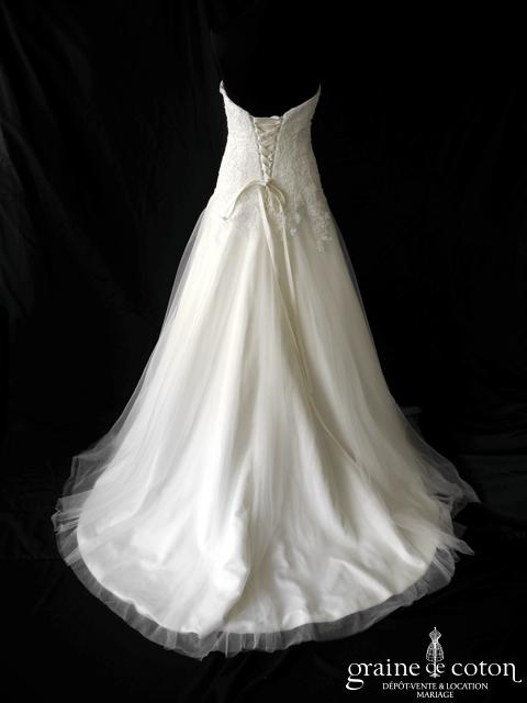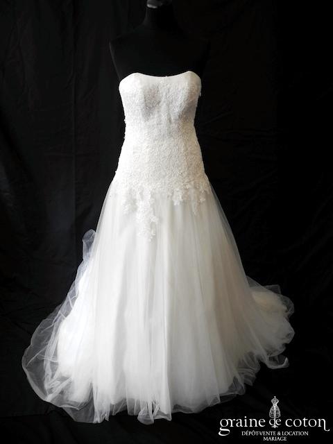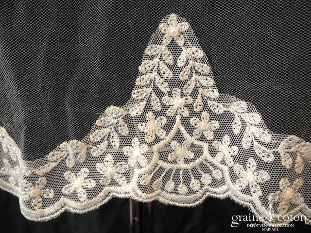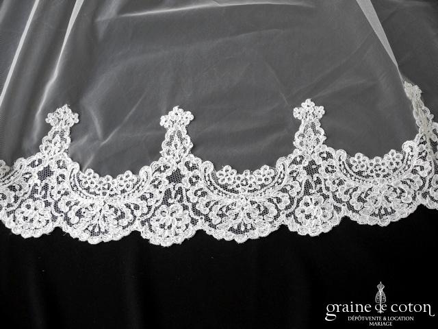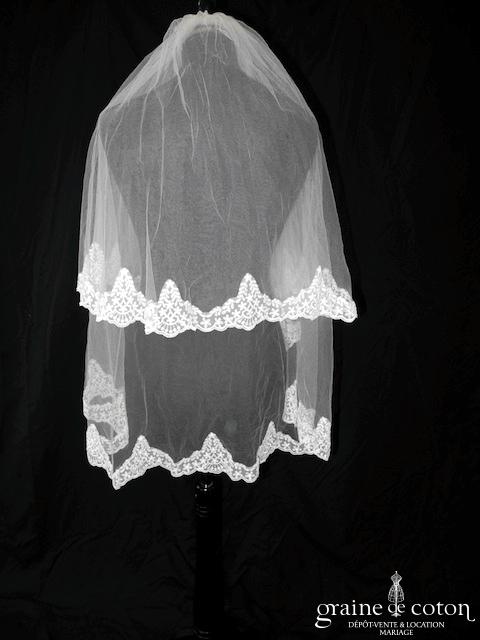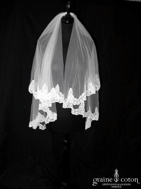 Voile court en tulle ivoire bordé de dentelle brodée. Avec rabat avant, monté sur peigne.