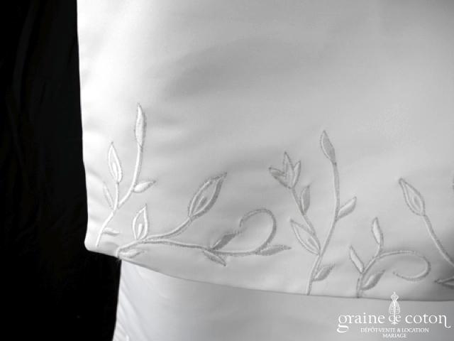 Étole en satin duchesse ivoire clair brodée de feuilles argentées
