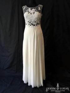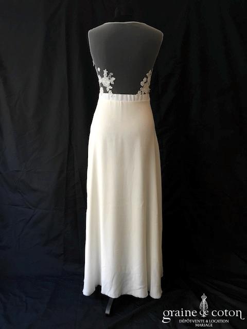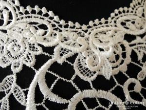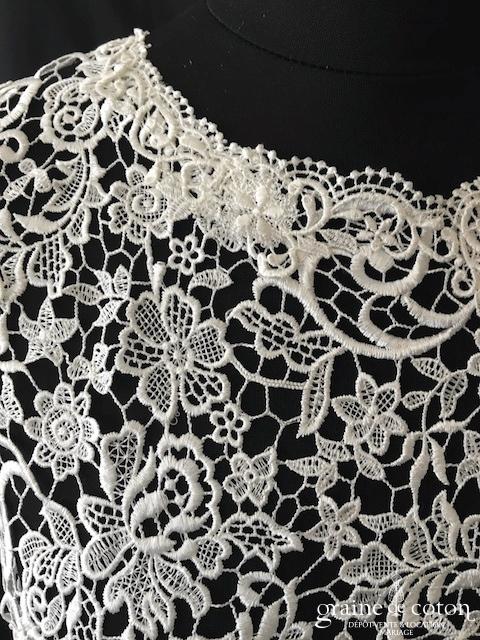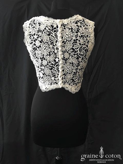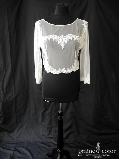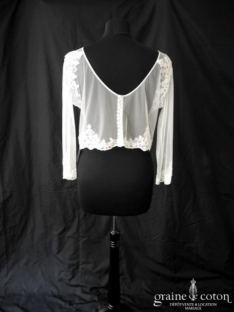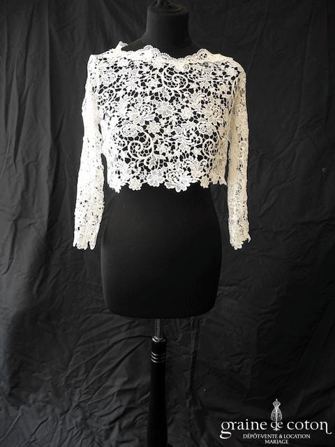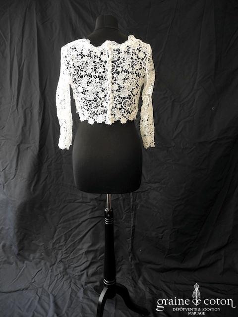 Boléro en guipure brodée ivoire sans manches, encolure bateau. Original et élégant.