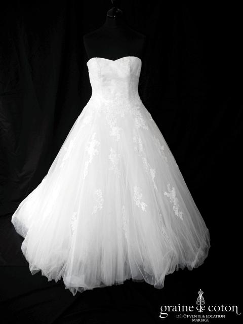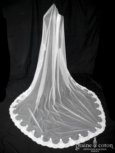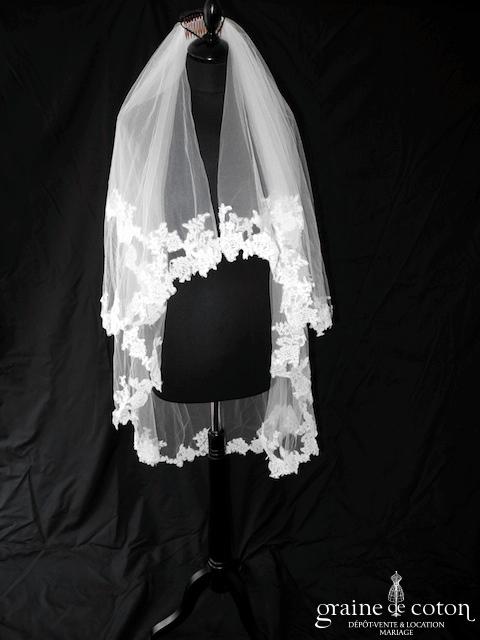 Voile court en tulle souple blanc et fine dentelle de calais