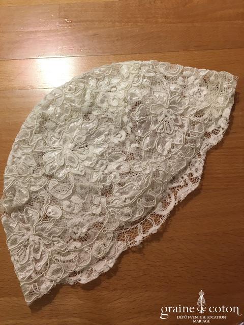 Bonnet /calotte de mariée en dentelle de Calais ivoire