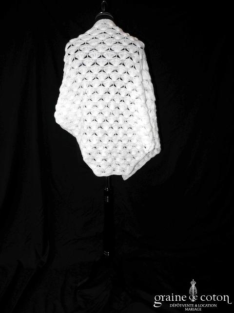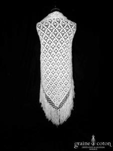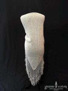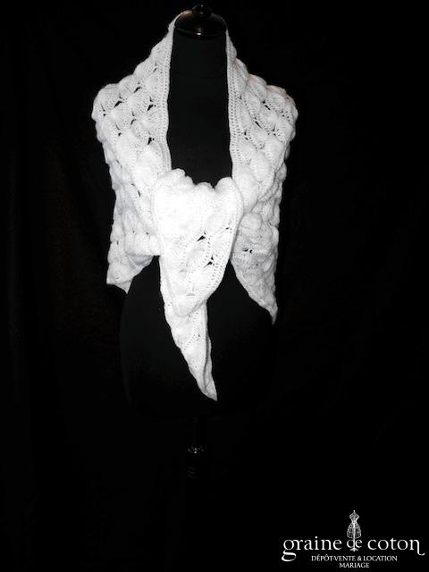 Châle en laine blanche – fait main. Dimensions : hauteur 83 cm * base 175 cm.