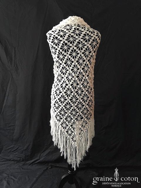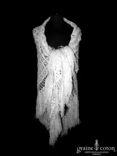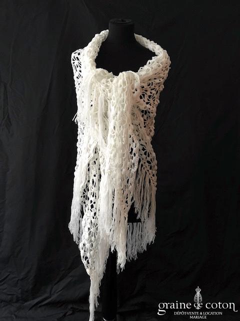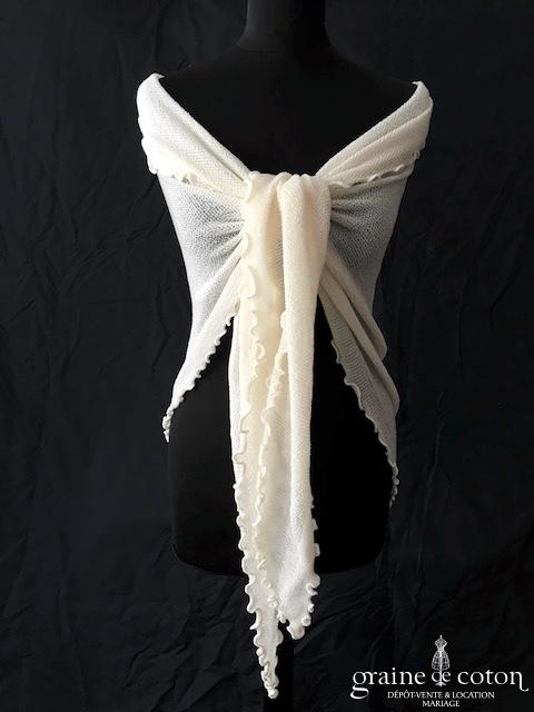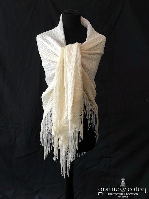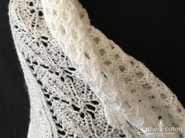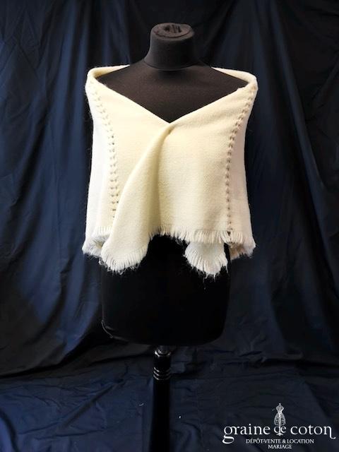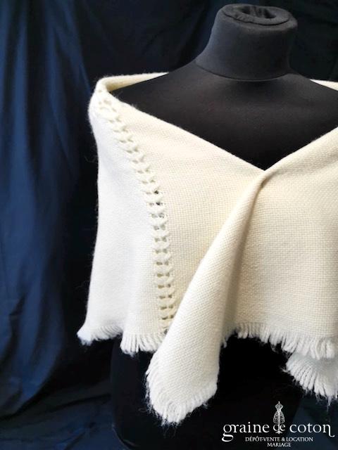 Châle en laine ivoire : fait main. Belle matière pour une mariée bien au chaud tout en élégance !