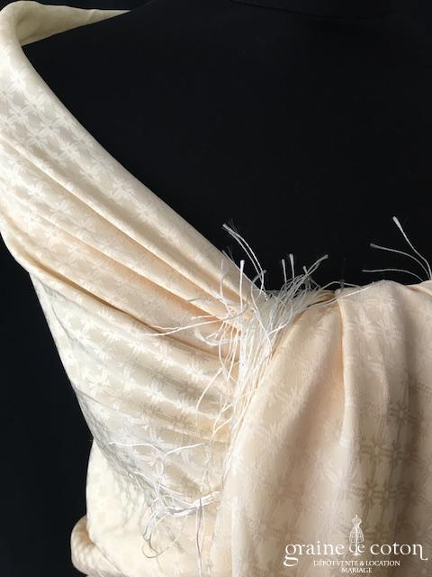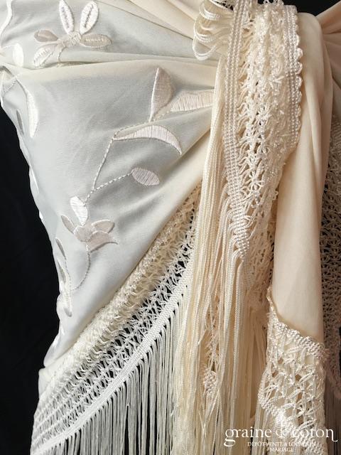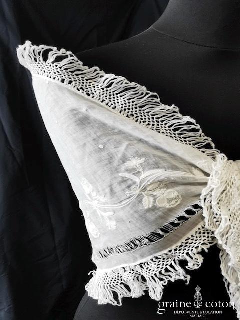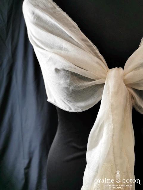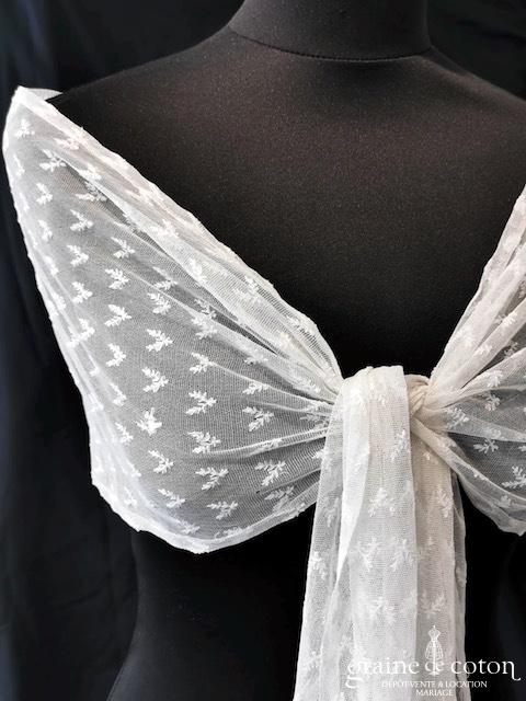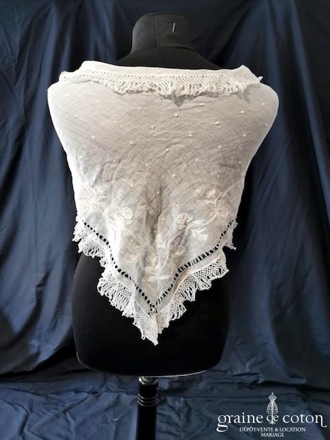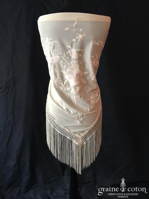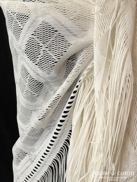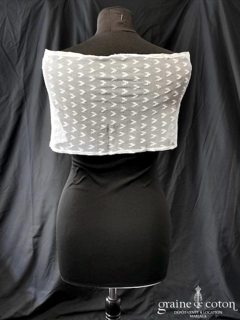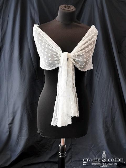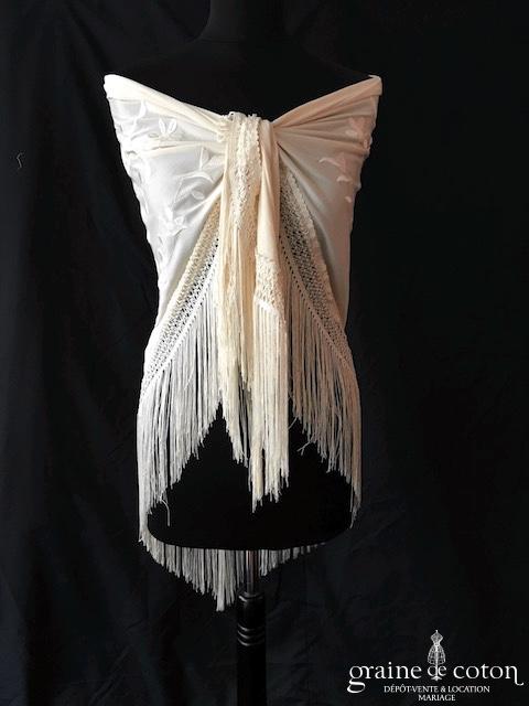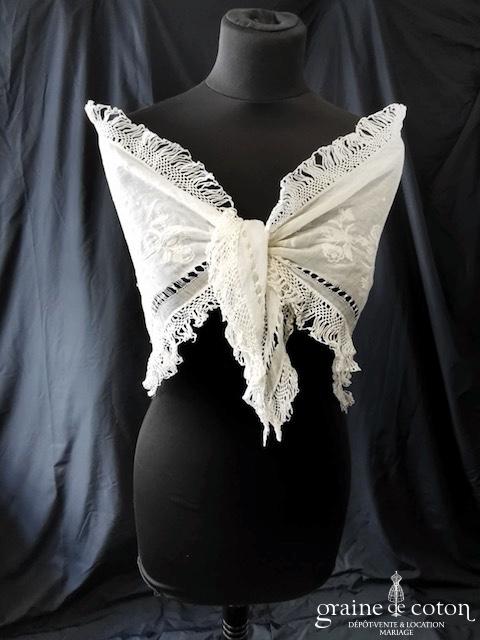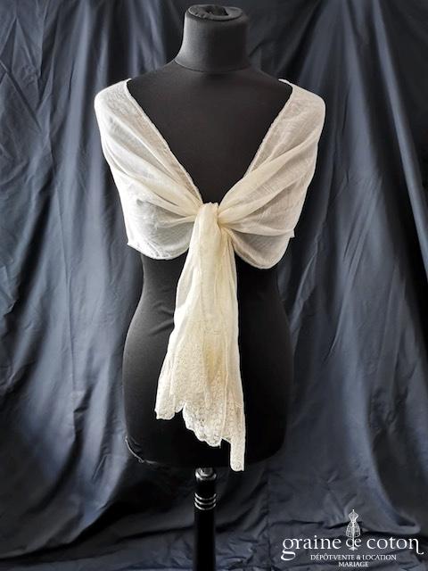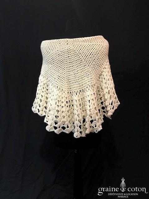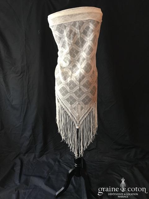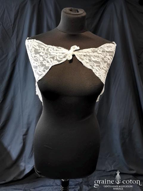 Étole façon châle en dentelle ivoire. Forme triangulaire. A fixer avec une broche par exemple.