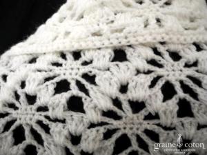 Châle rectangulaire en laine ivoire ajourée – fait main