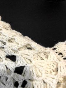Châle en laine ajouré blanche – fait main. Dimensions : base 160 cm * hauteur 90 cm.