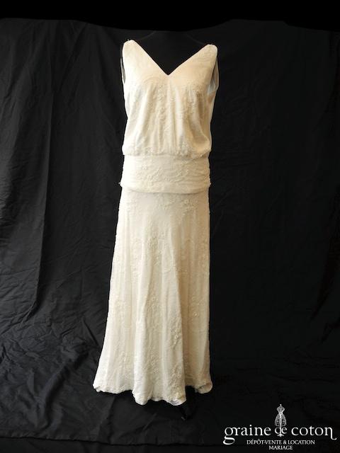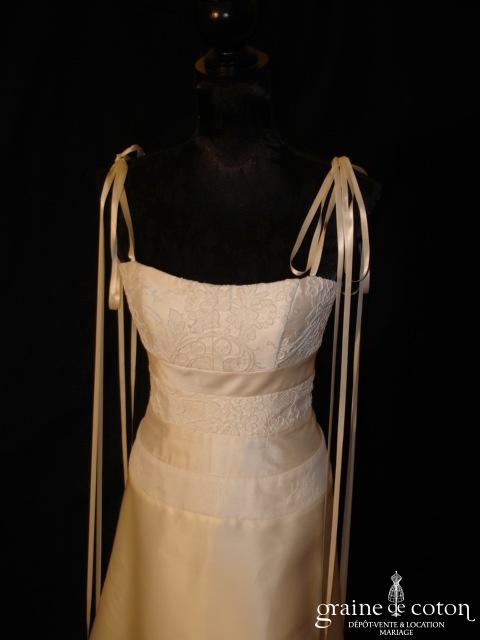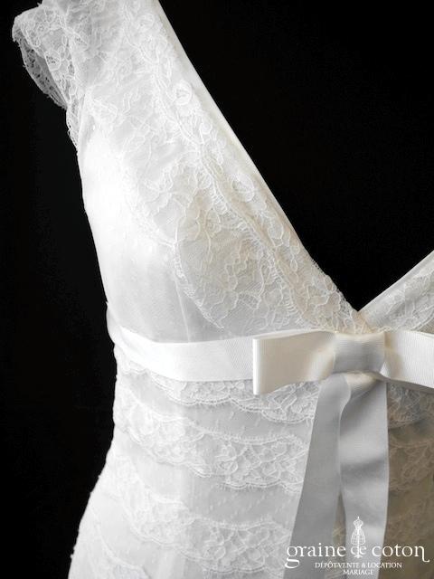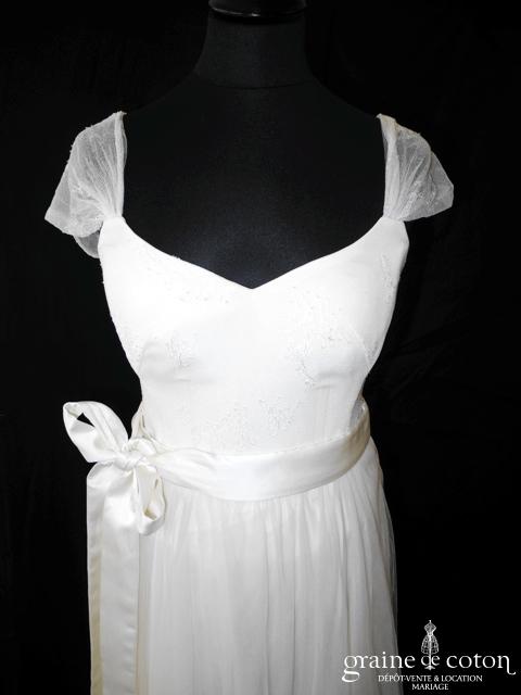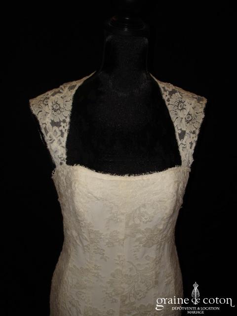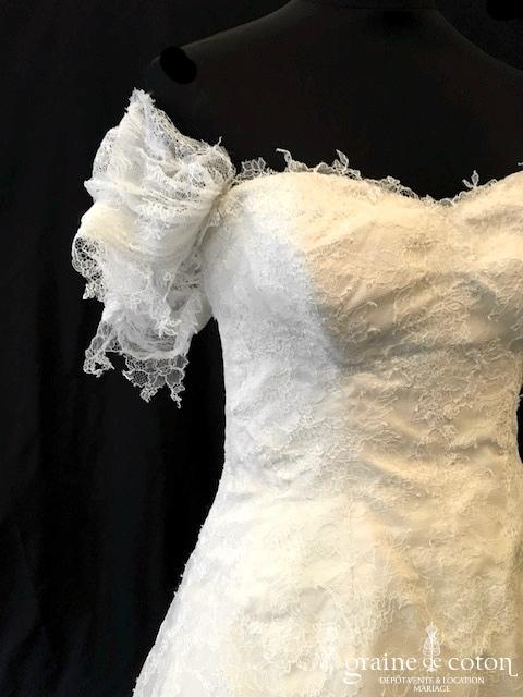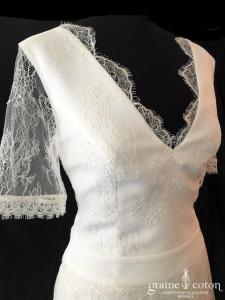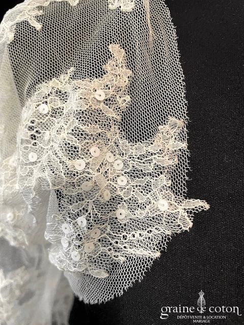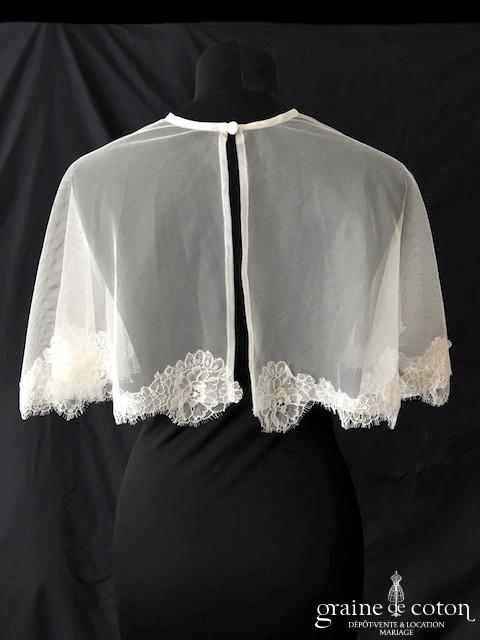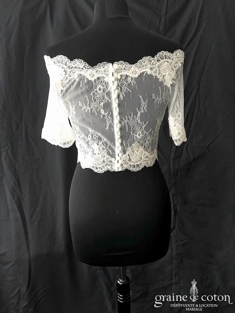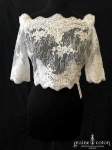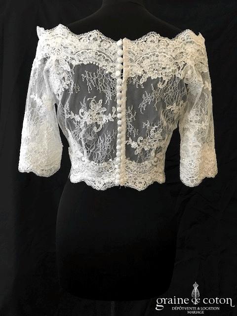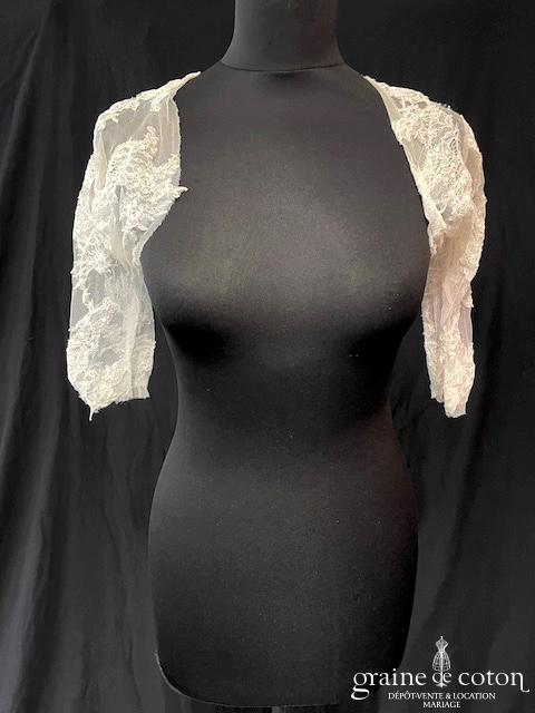 Boléro en fine dentelle de Chantilly ivoire à manches courtes et encolure bateau