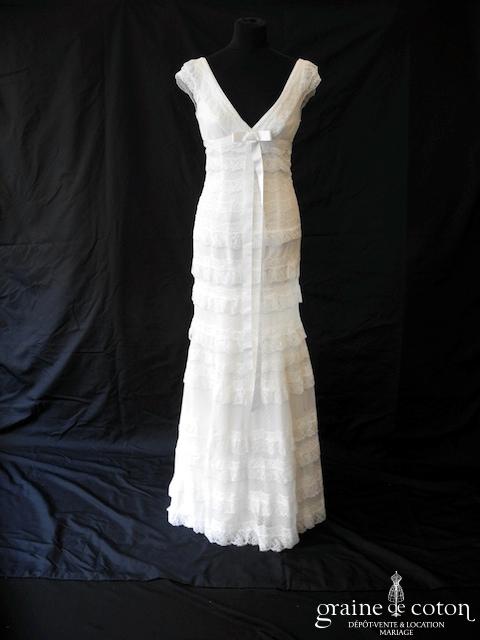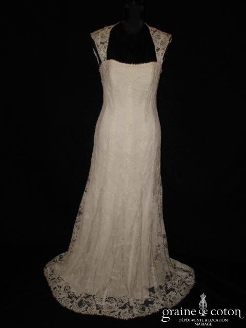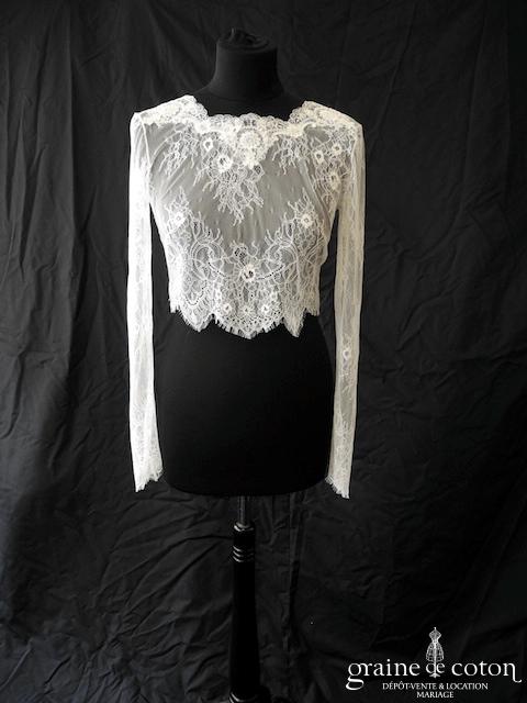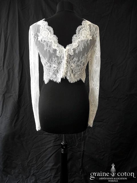 Boléro en fine dentelle de Chantilly ivoire à manches longues et encolure bateau