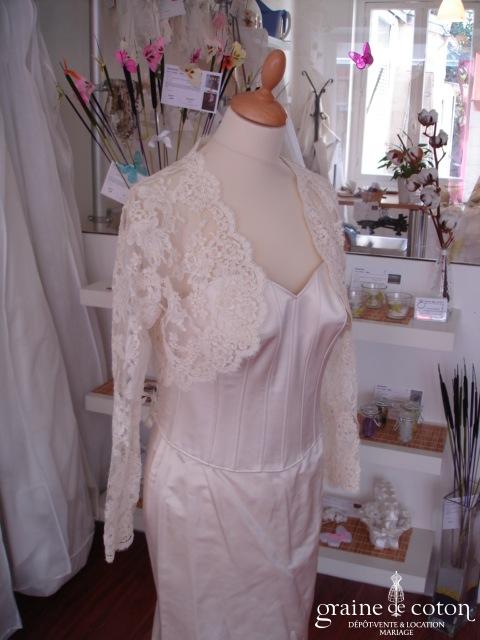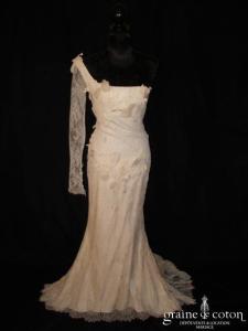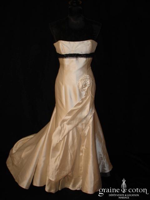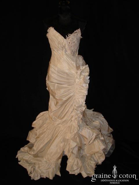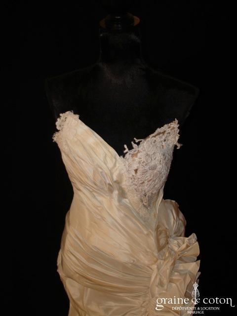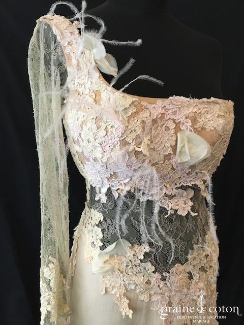 Max Chaoul – Création en dentelle et crêpe et mousseline de soie champagne