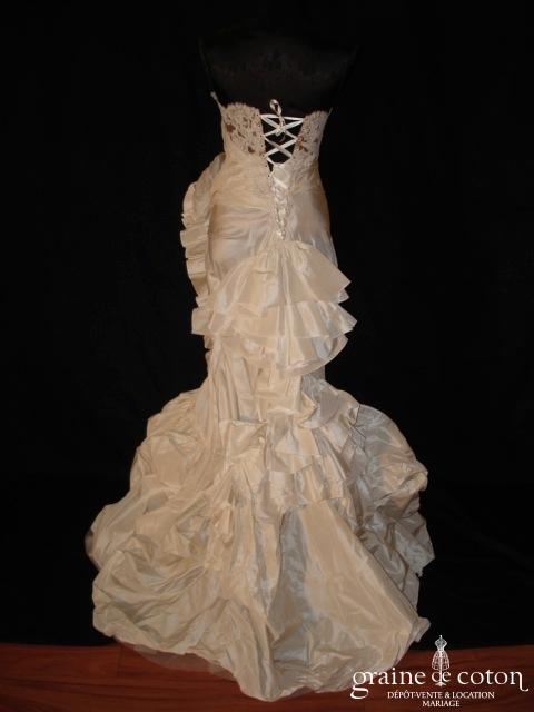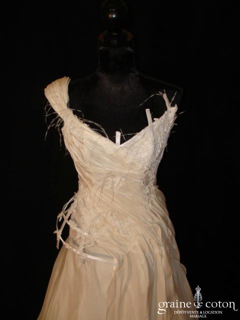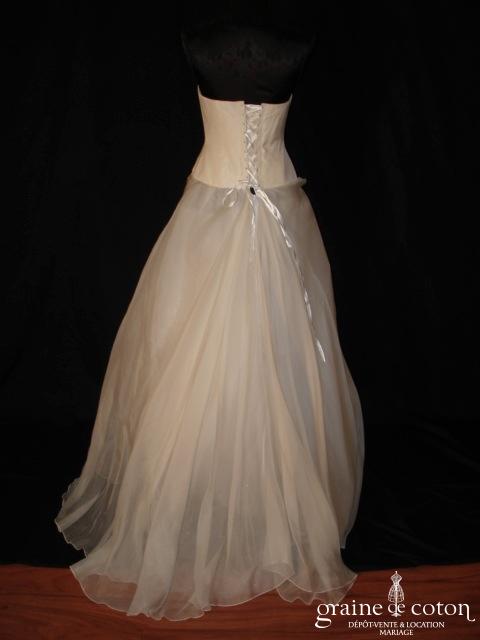Max Chaoul – Robe en soie ivoire et tulle plumetis