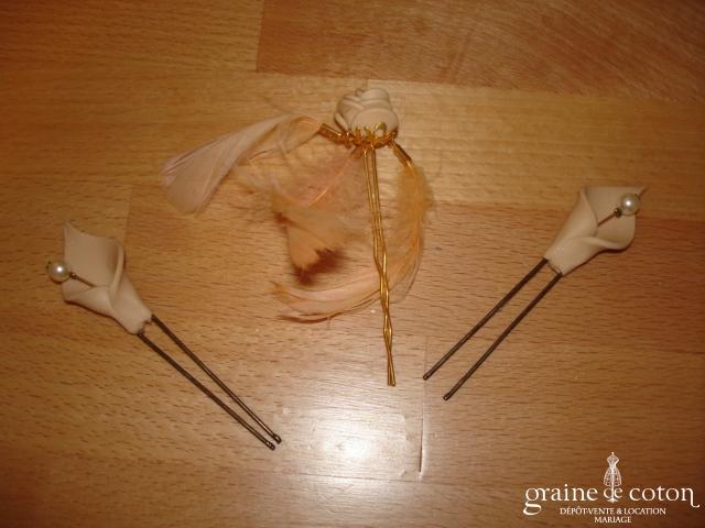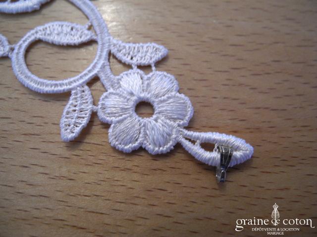 Accessoire de cheveux en dentelle : peut se fixer par des pics à chignon. Possibilité de le transformer également en pendant de cou ou de dos, accroché sur un tour …