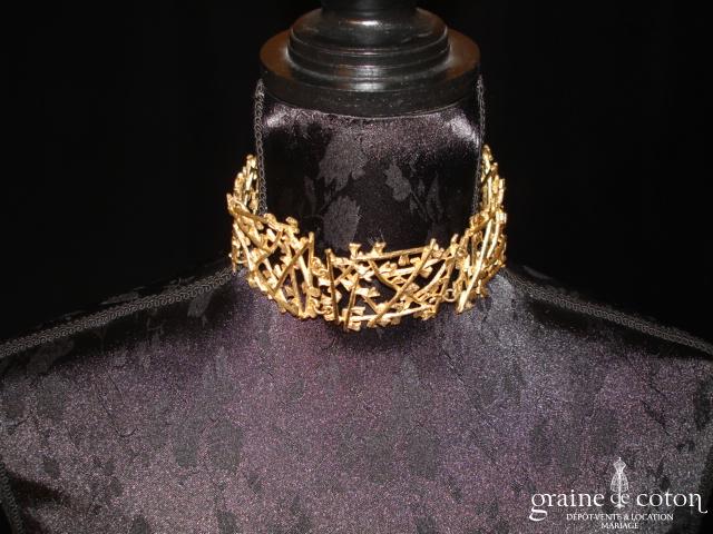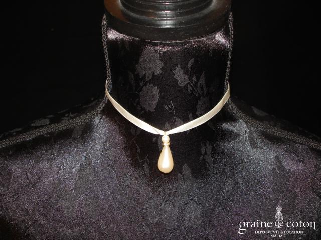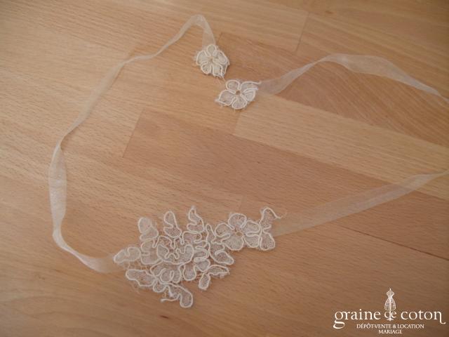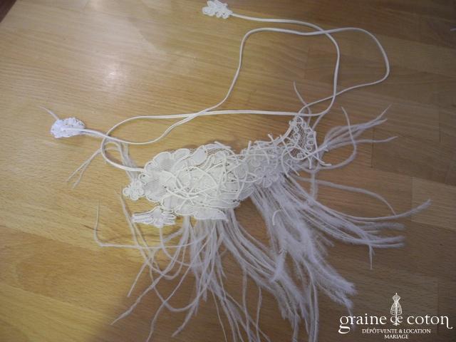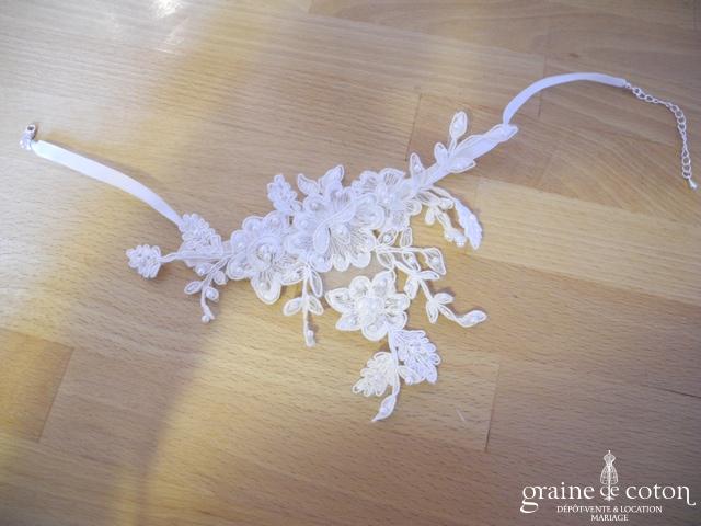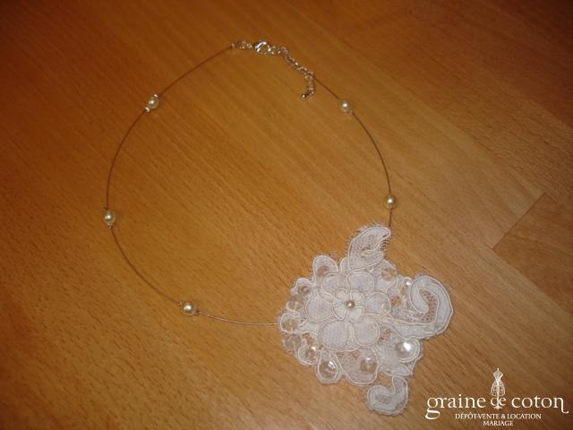 Collier en dentelle ivoire clair, se fermant par 4 petits boutons.