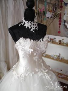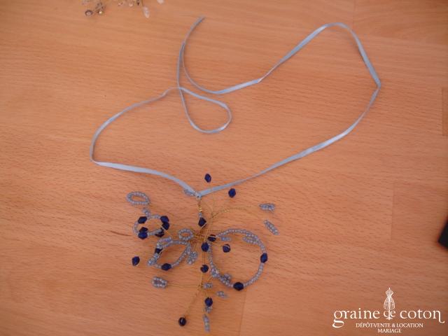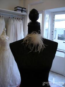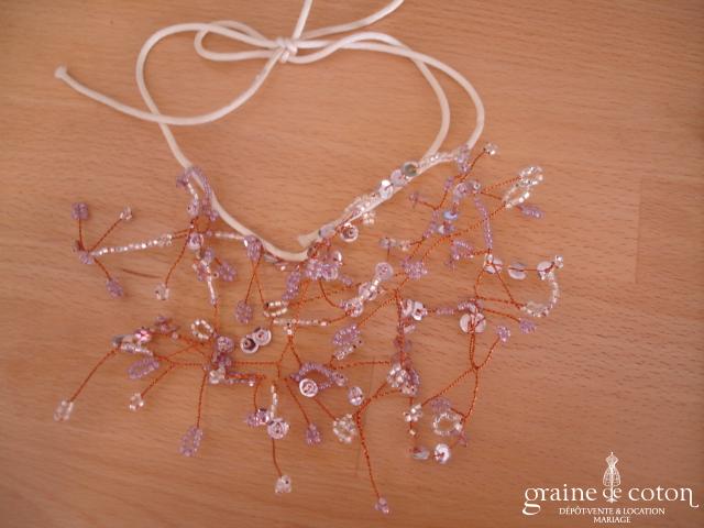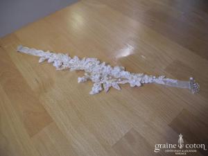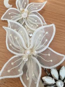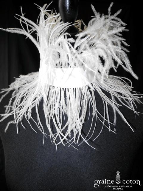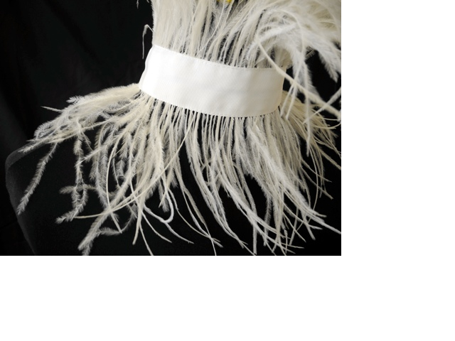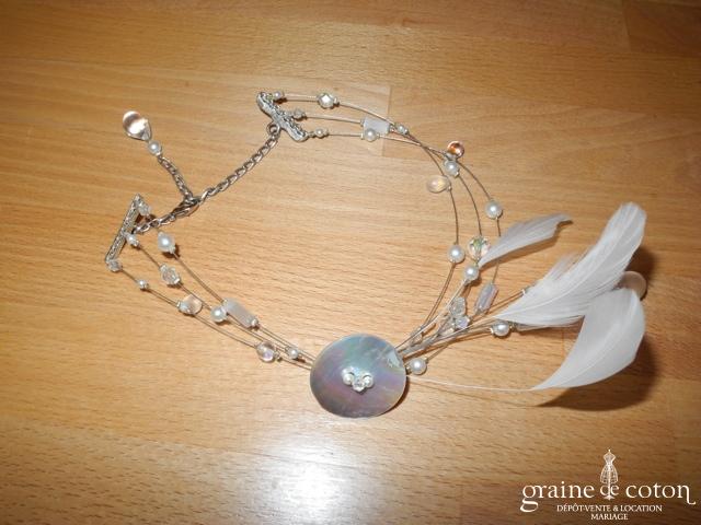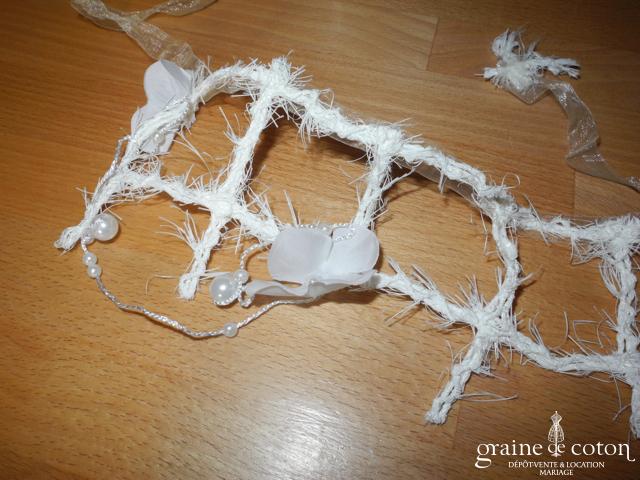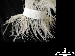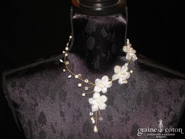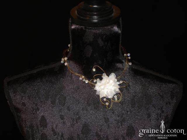 Tour de cou avec orchidée, ruban en organza, plumes et perles ivoires