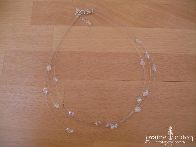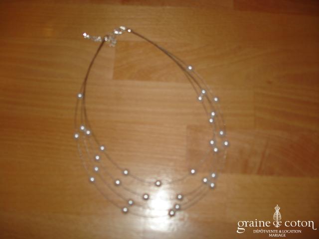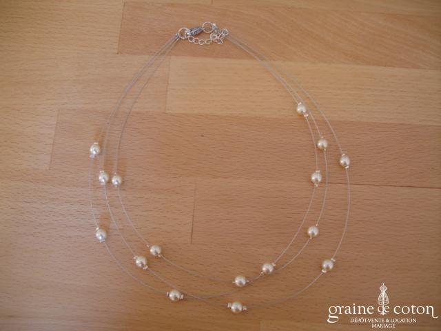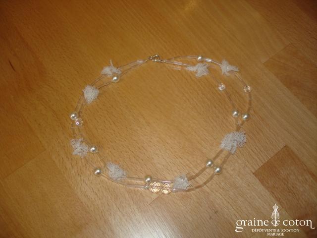 Tour de cou deux rangs avec perles et dentelle ivoire.