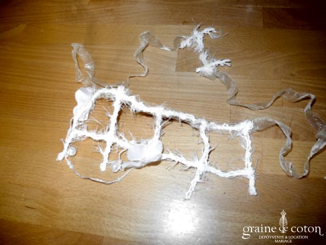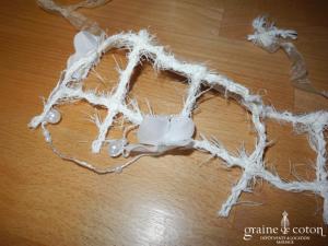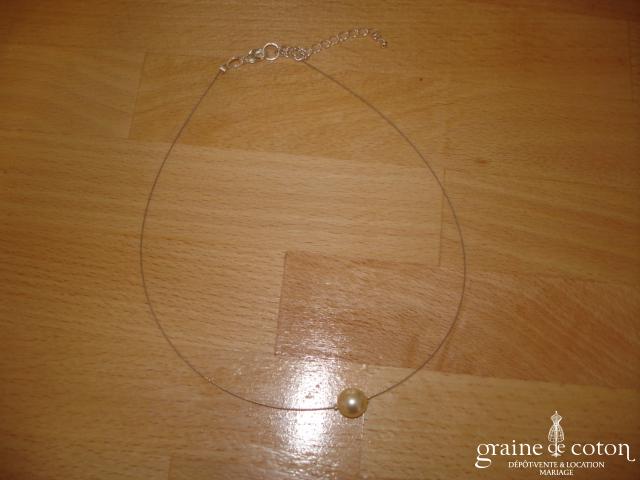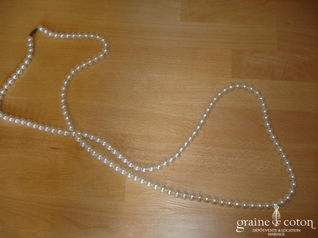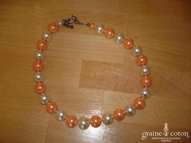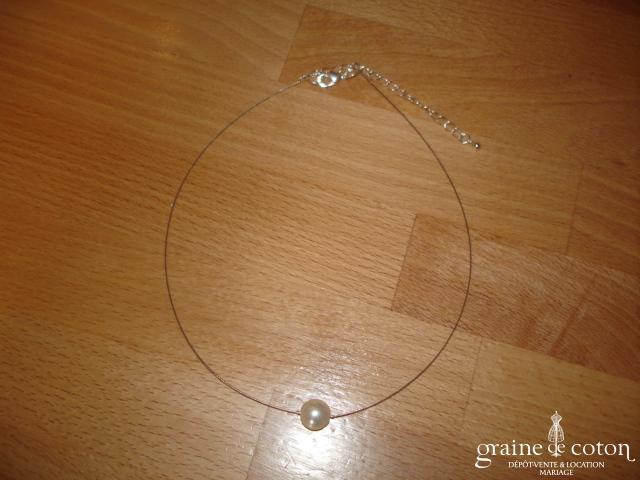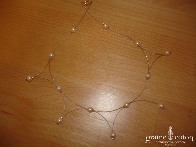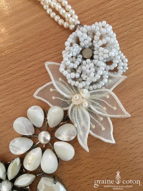 Tour de cou (collier) en perles ivoires et tulle.