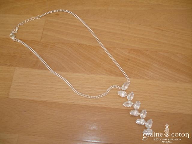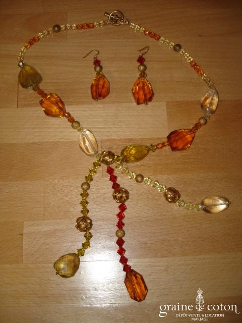 Parure (collier et boucles d’oreilles clips) en perles et strass.