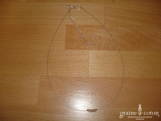 Collier fin monté sur fil de nylon en perles et fleurs/plumes. Délicat.