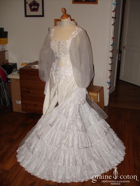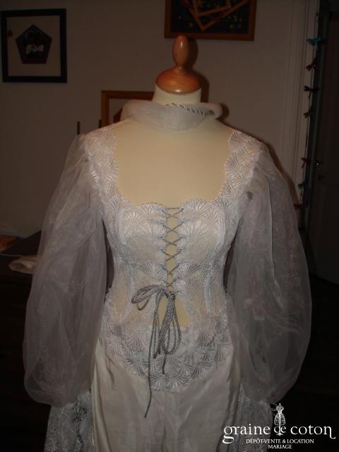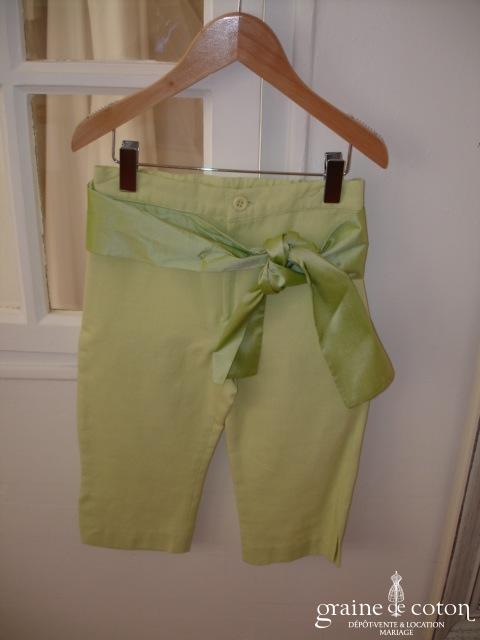 Ensemble petit garçon d’honneur composé d’un corsaire en coton vert anis et d’une chemise blanche et verte assortie. Ceinture en soie sauvage vert anis.