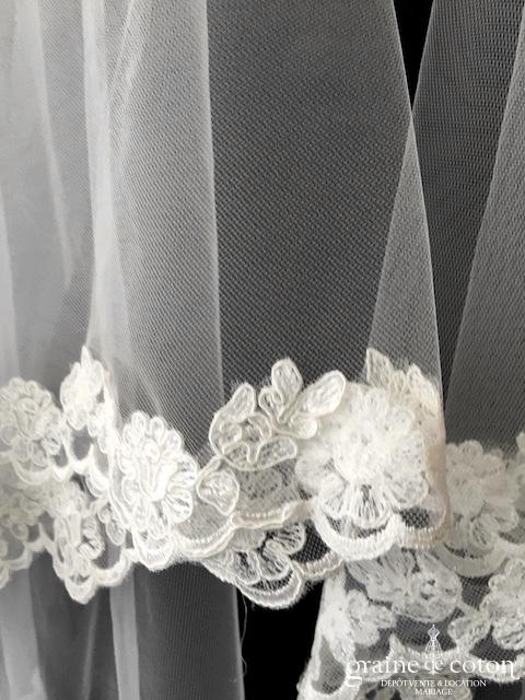 Cosmobella – Voile court en tulle ivoire bordé de dentelle