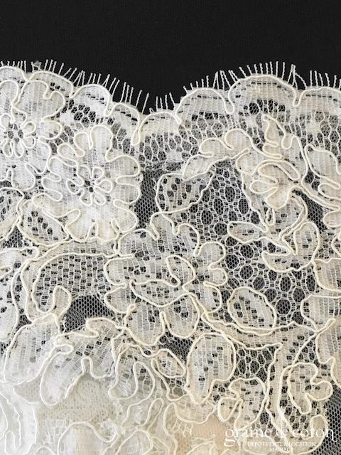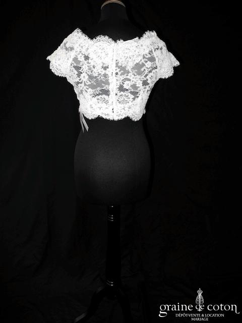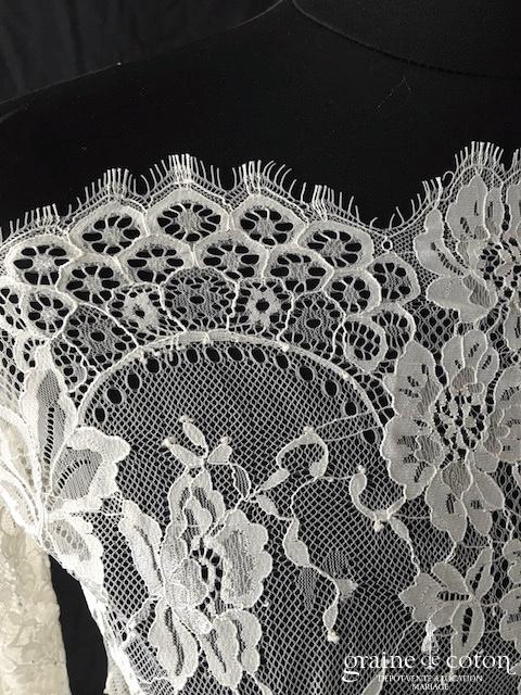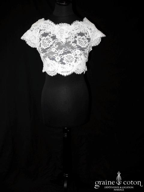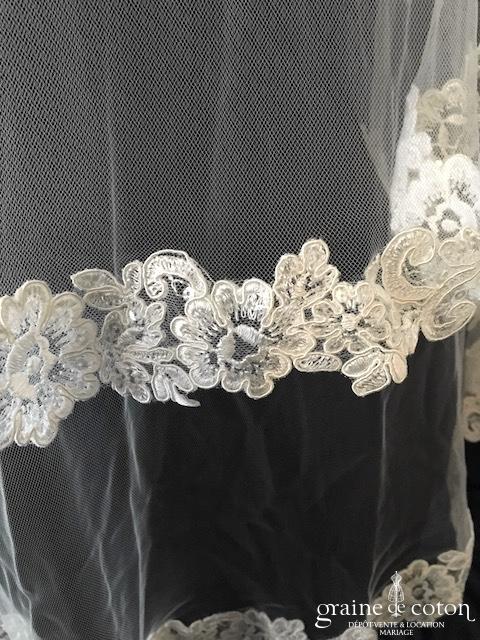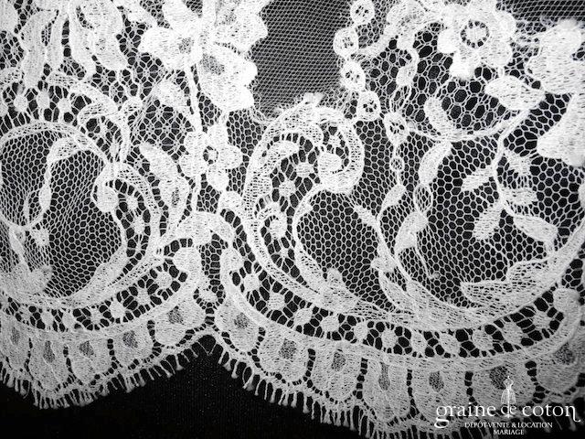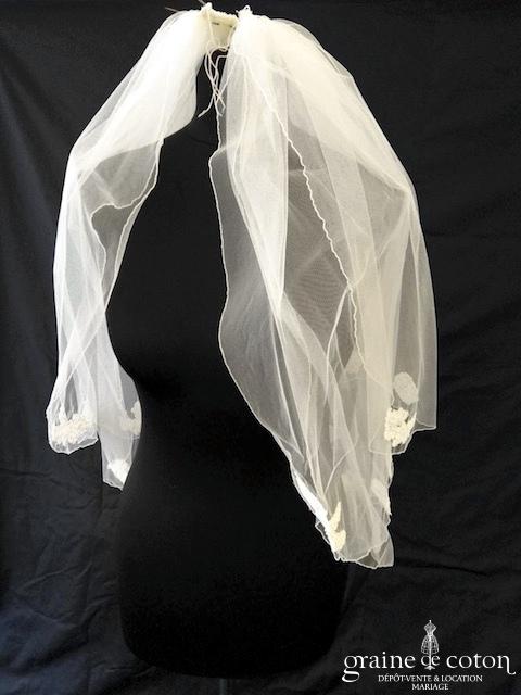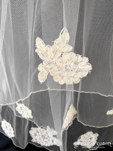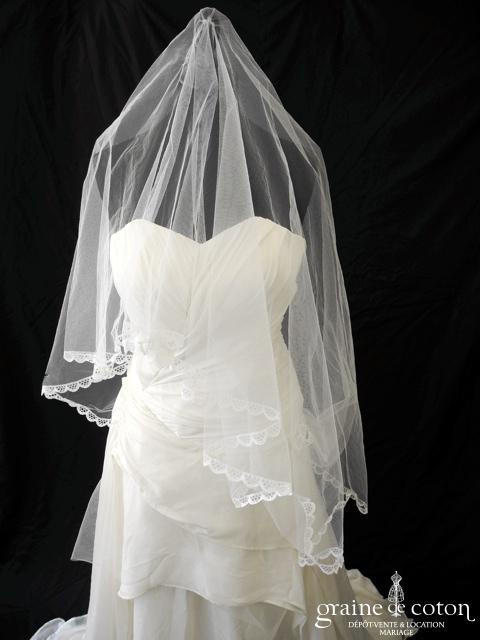 Voile court en tulle souple blanc et fine dentelle de calais. Non monté, à fixer à des pics à chignon.