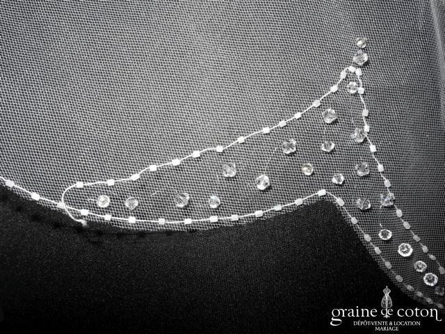 Voile court en tulle blanc avec cristaux. Monté sur peigne, avec rabat avant.