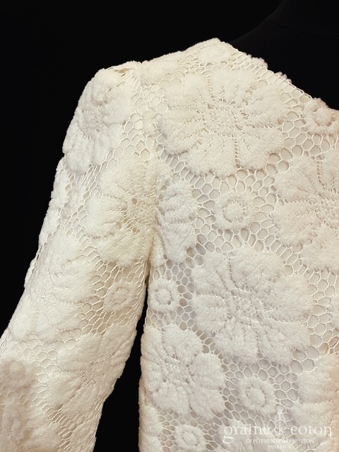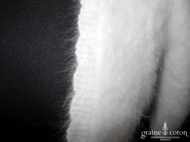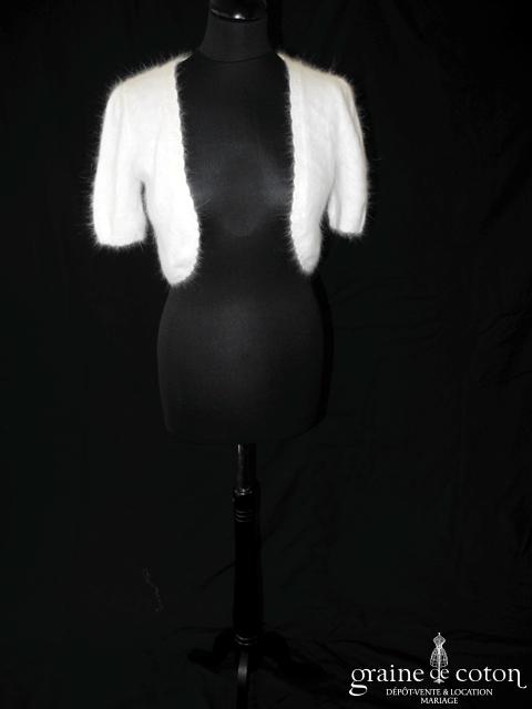 Manteau court en fausse fourrure ivoire clair, manches 3/4. Mignon ;o)