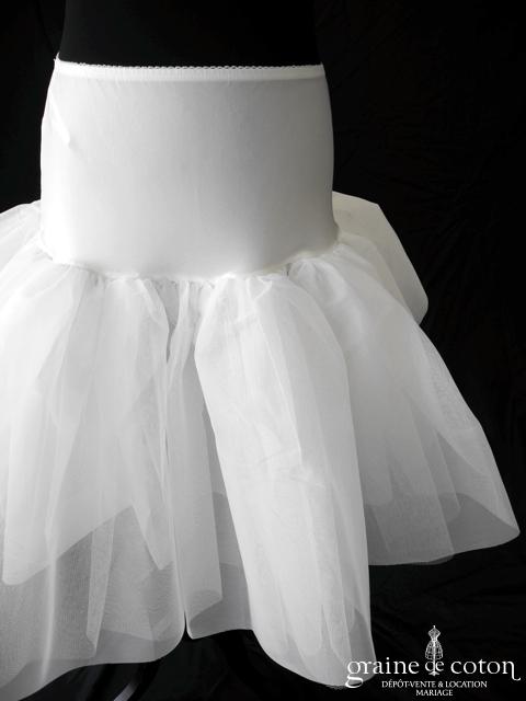 Voile court à volutes en tulle blanc bordé d’un biais de satin
