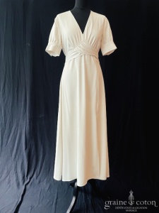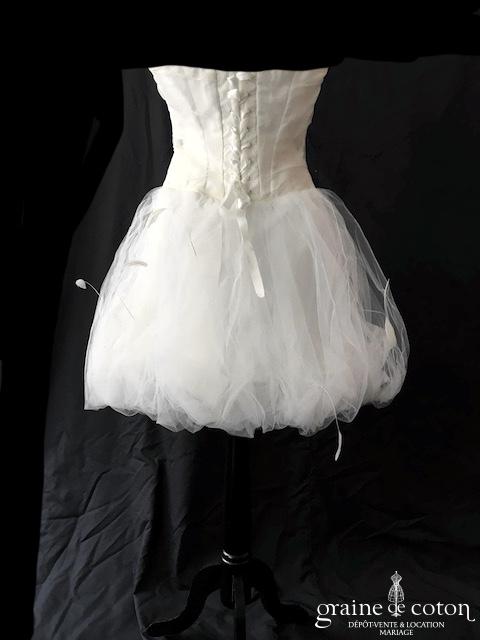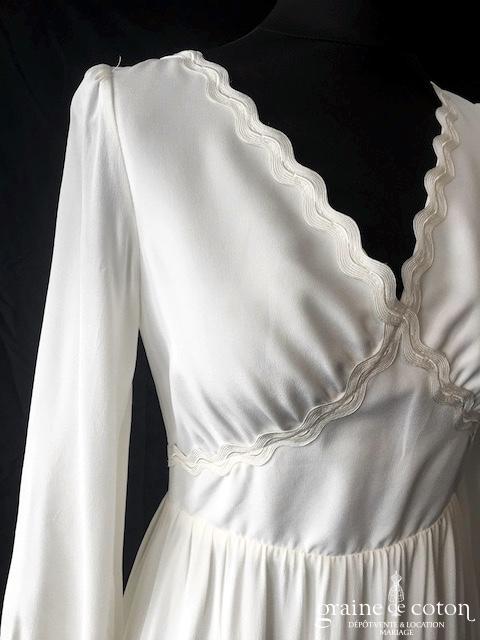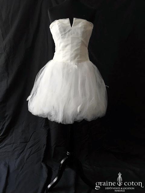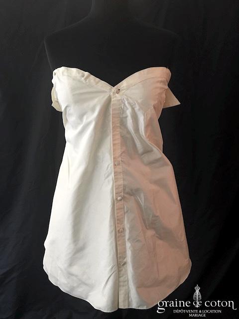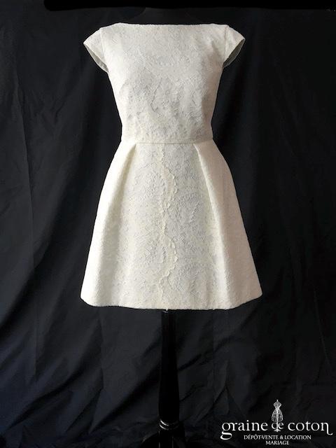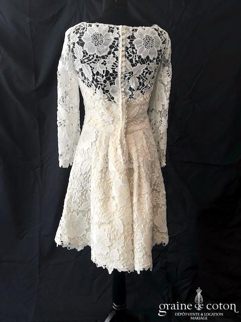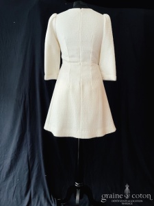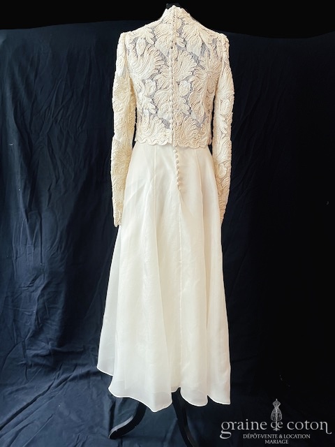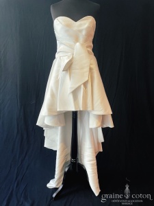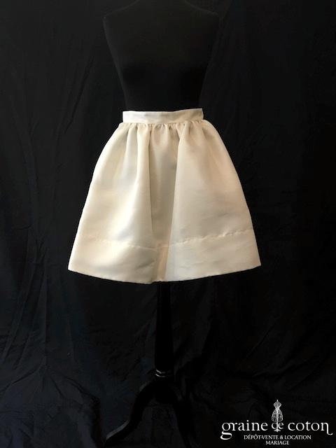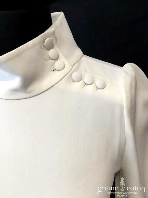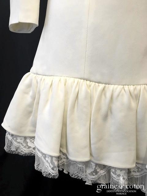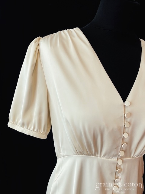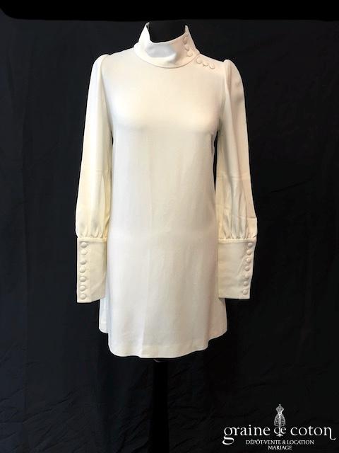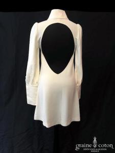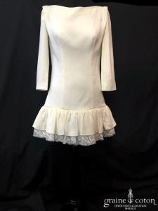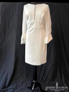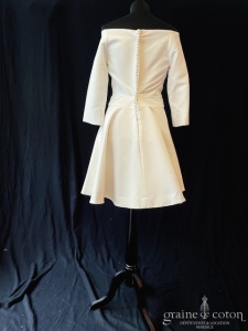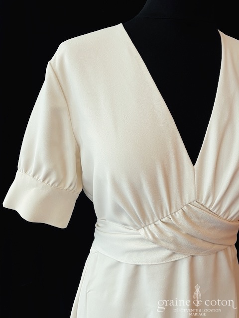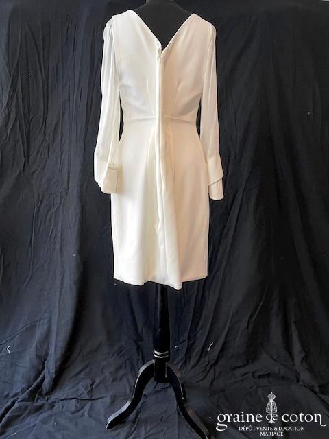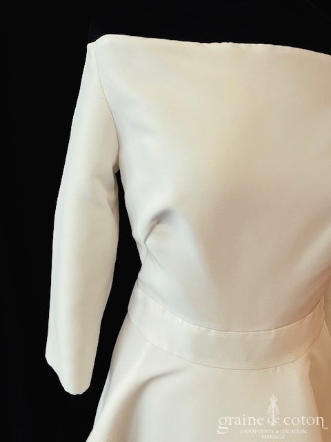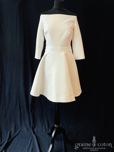 Robe courte en taffetas ivoire à manches longues évasées. Idéale en 2e tenue civile ou pour la soirée.