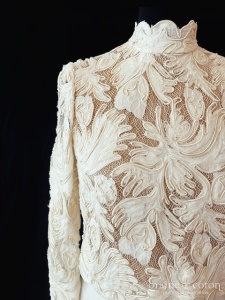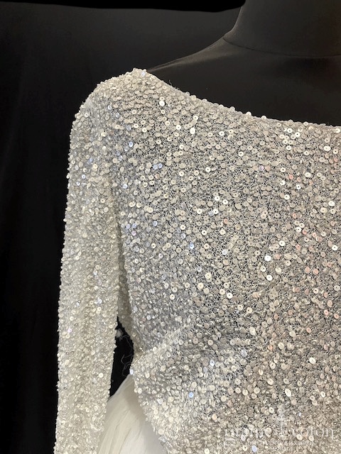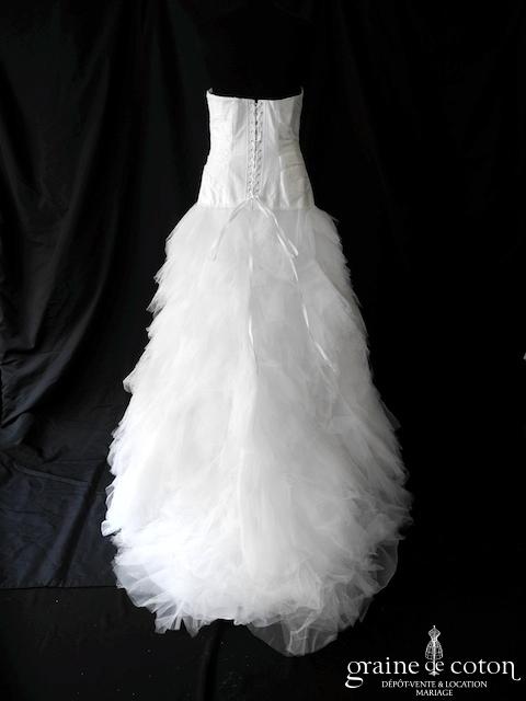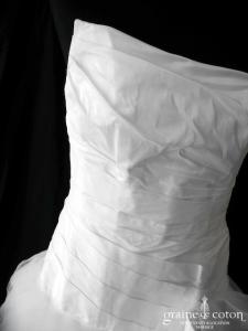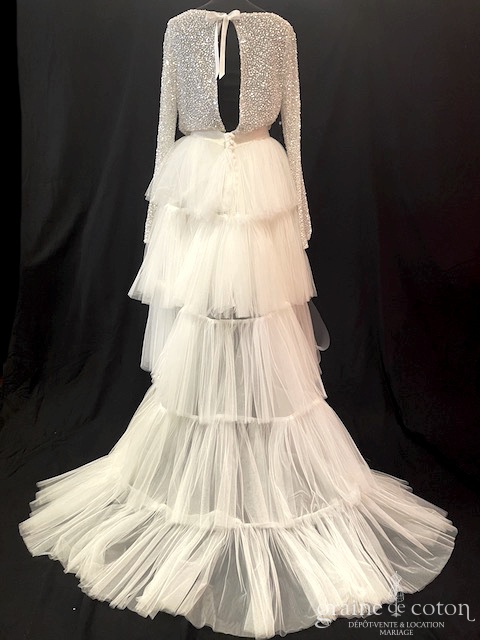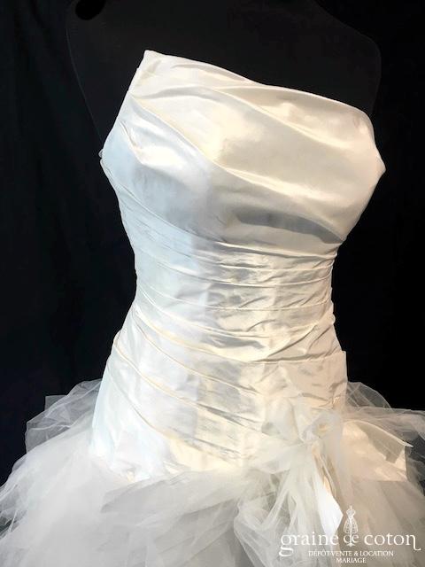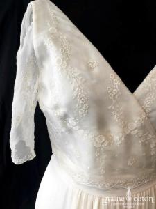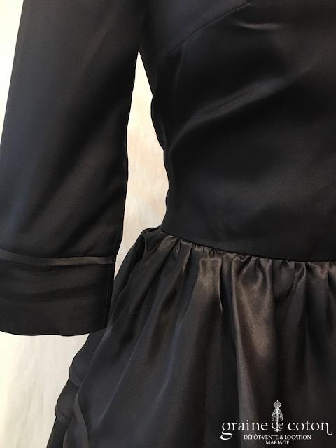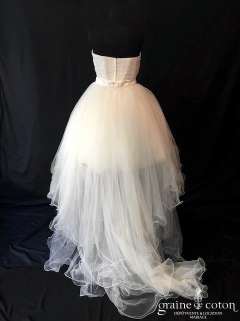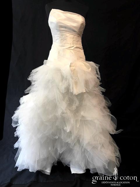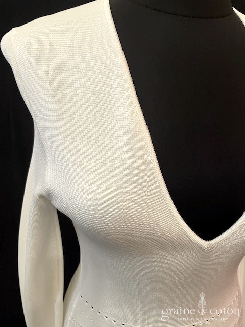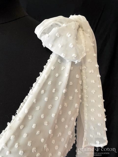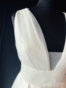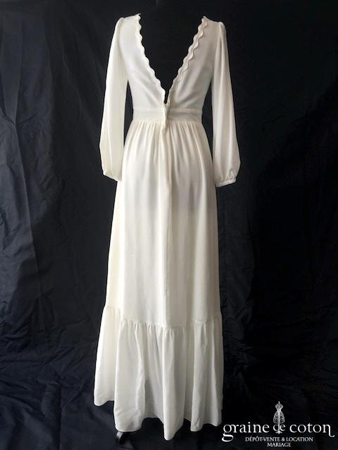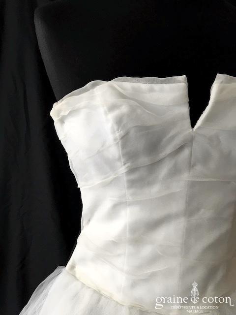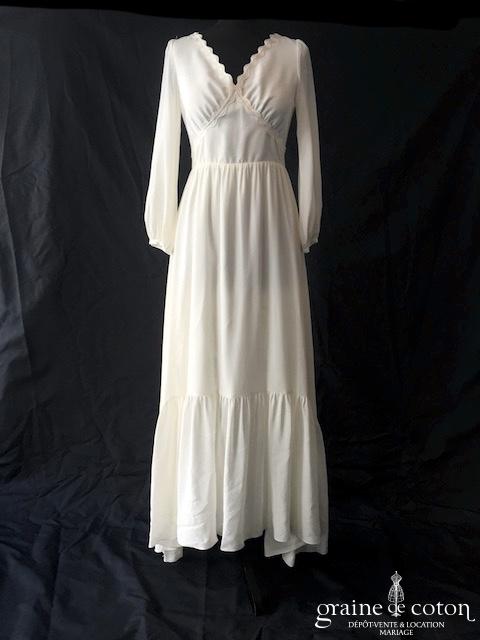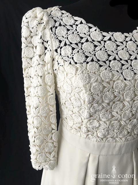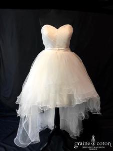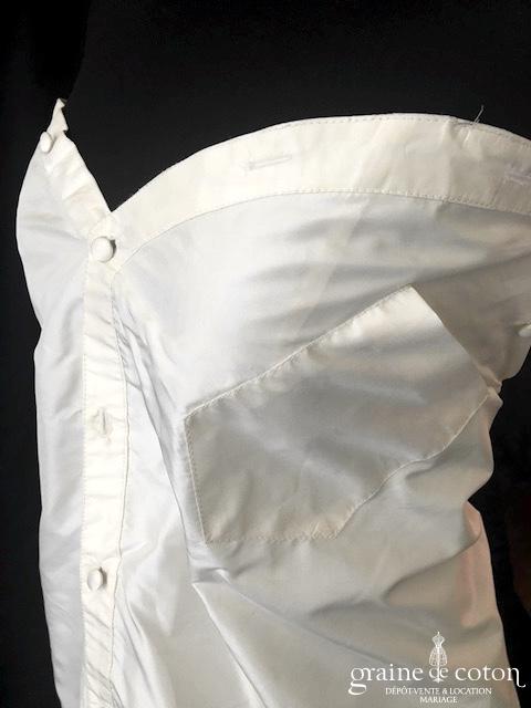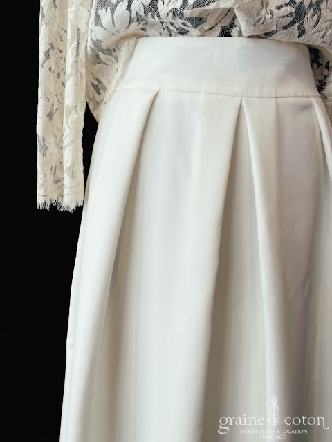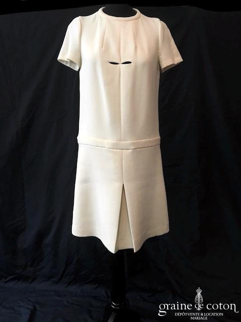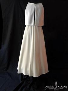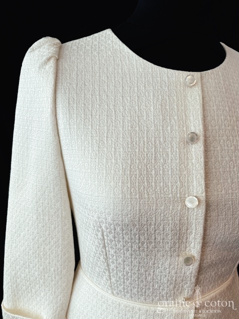 Robe courte en taffetas ivoire à manches longues évasées. Idéale en 2e tenue civile ou pour la soirée.