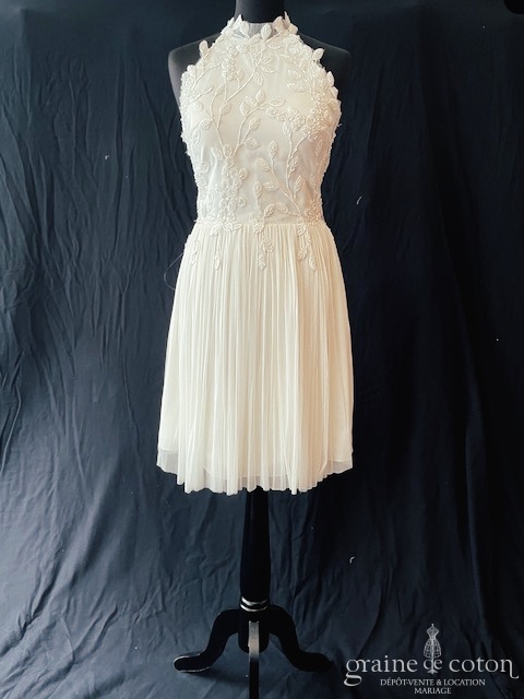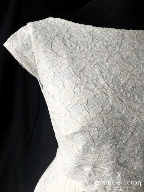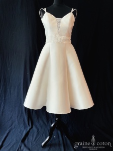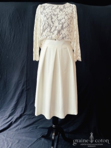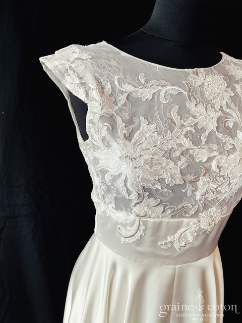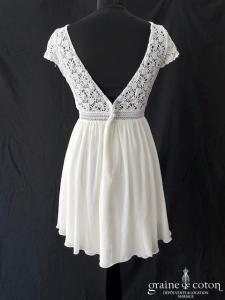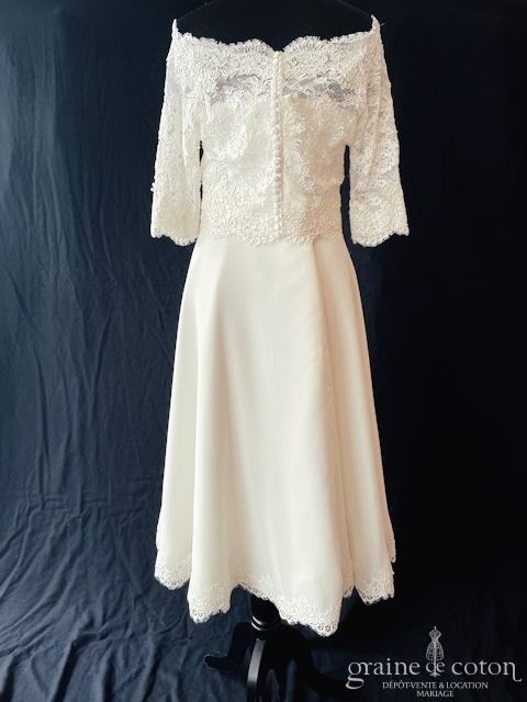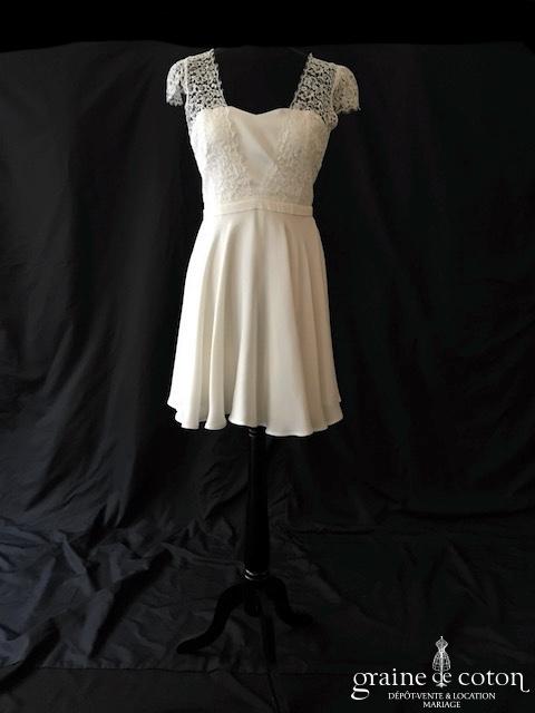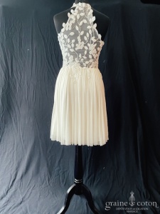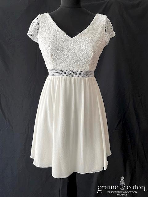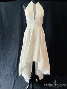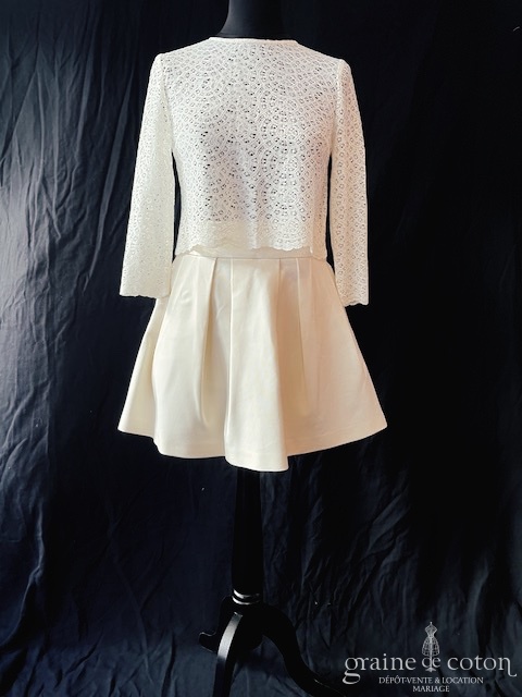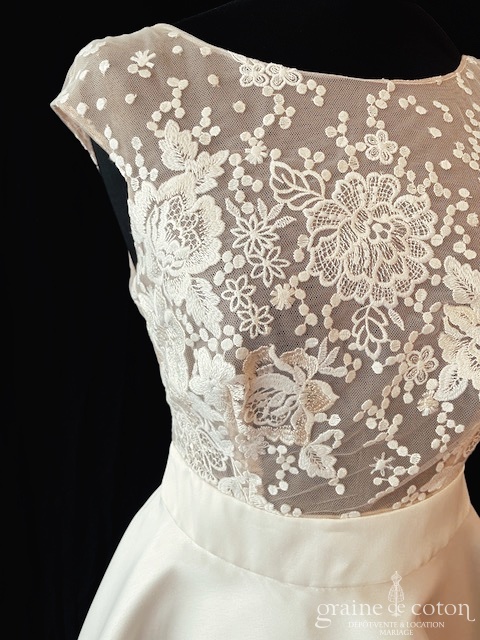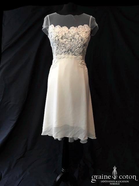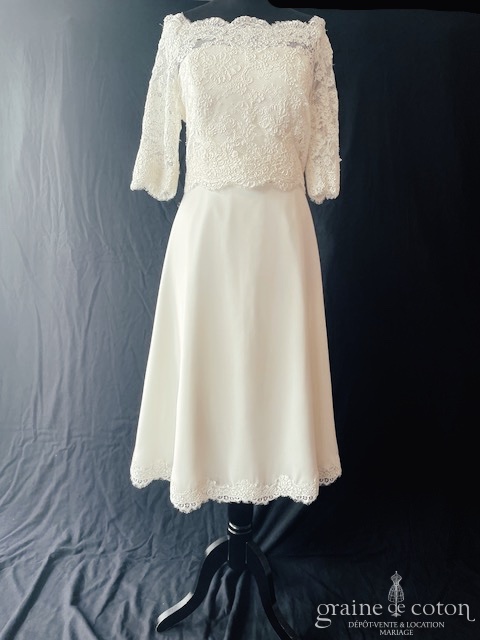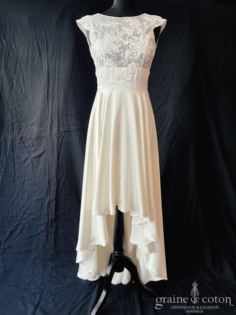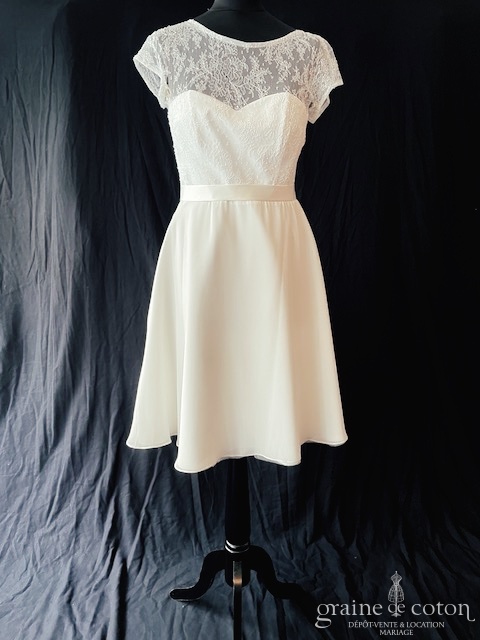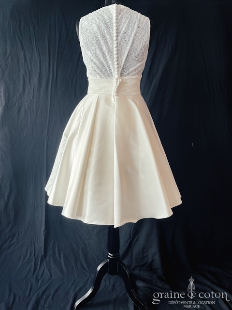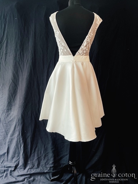 Robe courte compasée de 2 robes : une sous robe en satin et une sur robe en broderie ivoire. Légère et élégante, idéale en 2e tenue civile ou pour la …