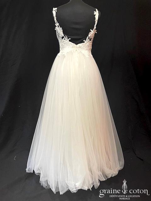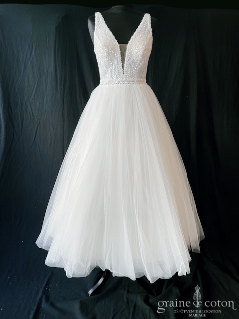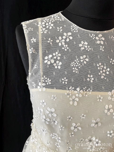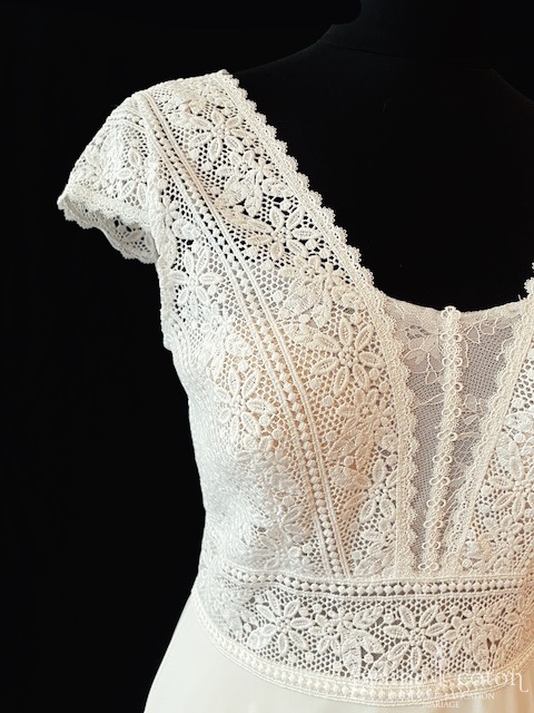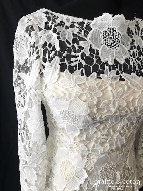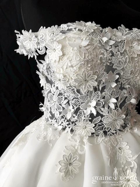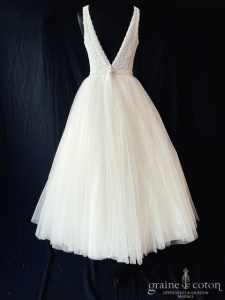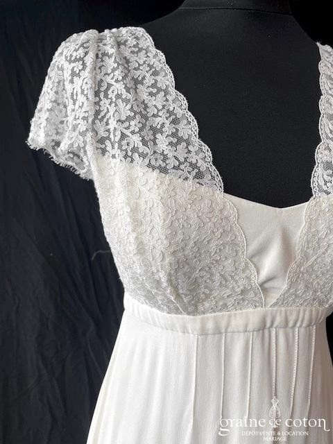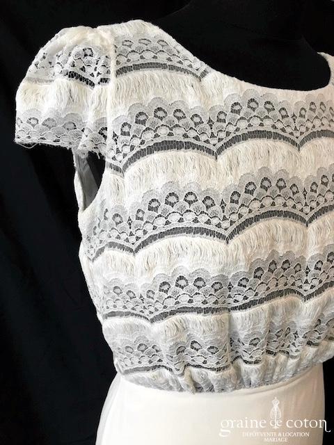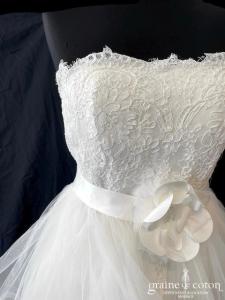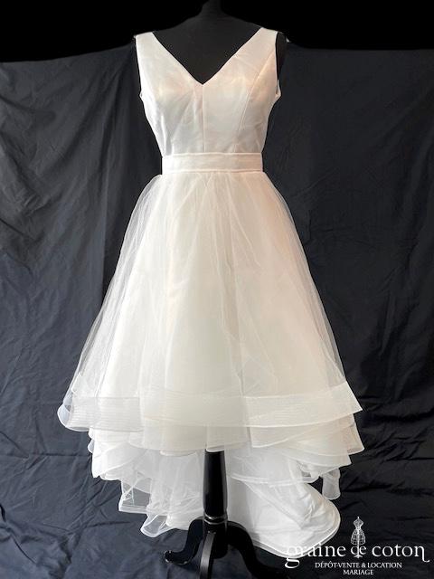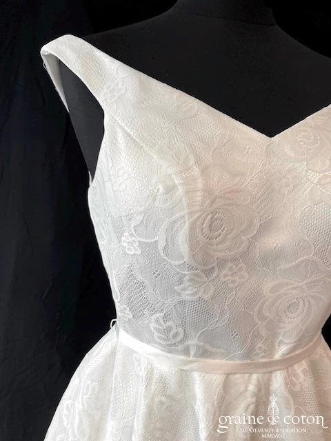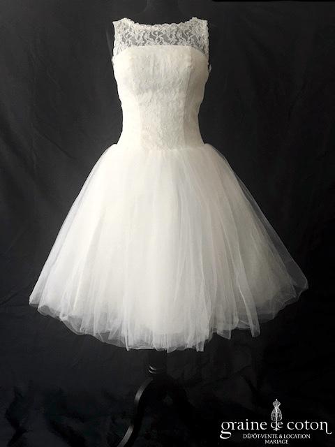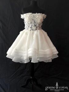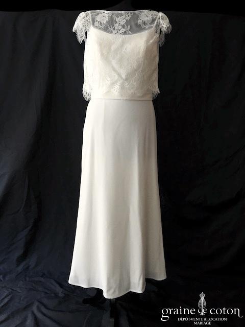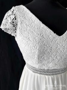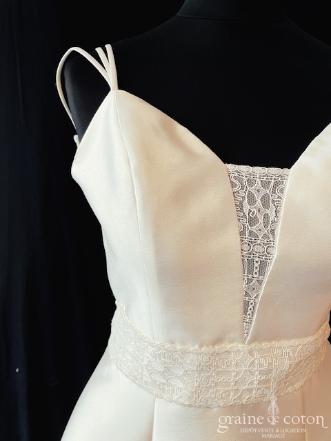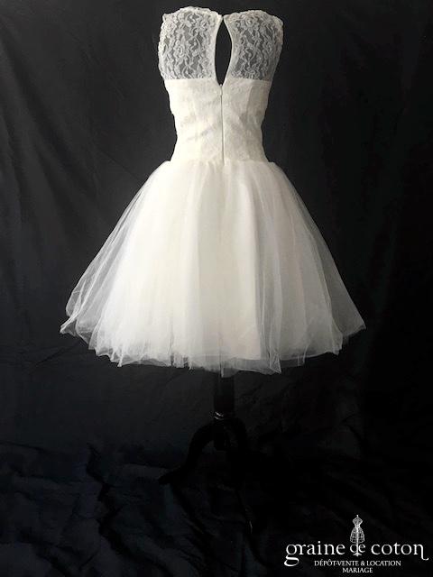 Robe courte compasée de 2 robes : une sous robe en satin et une sur robe en broderie ivoire. Légère et élégante, idéale en 2e tenue civile ou pour la …
