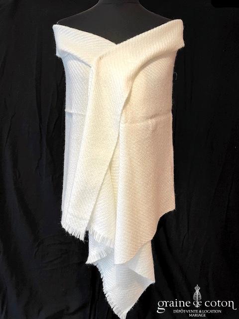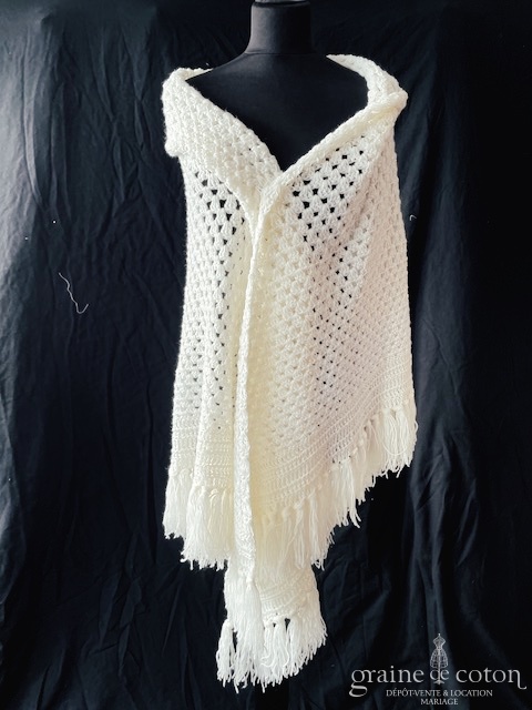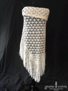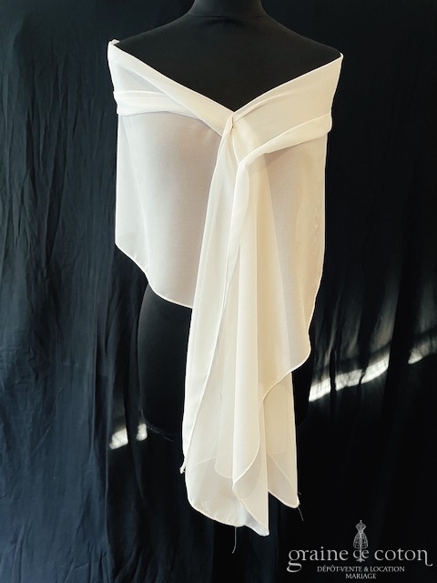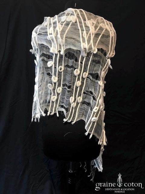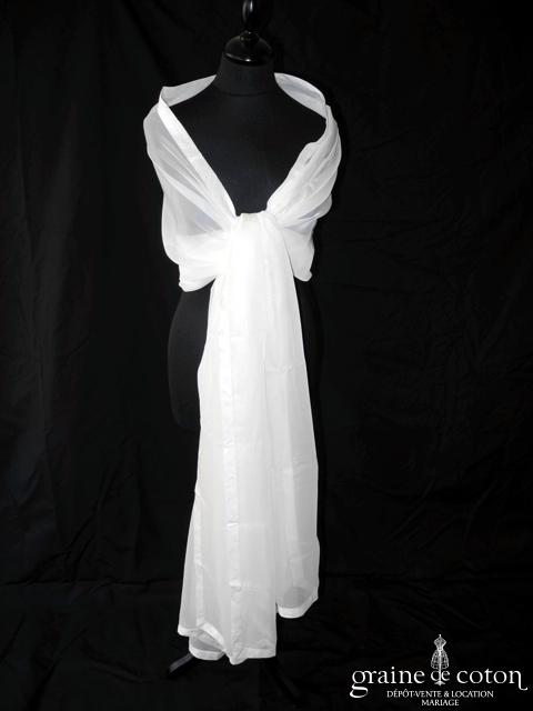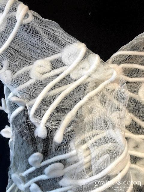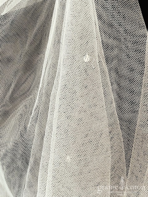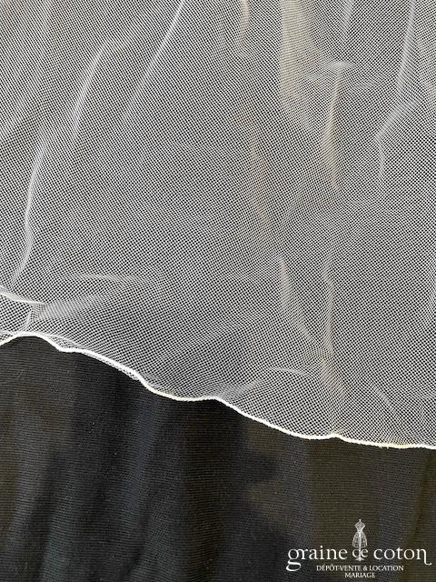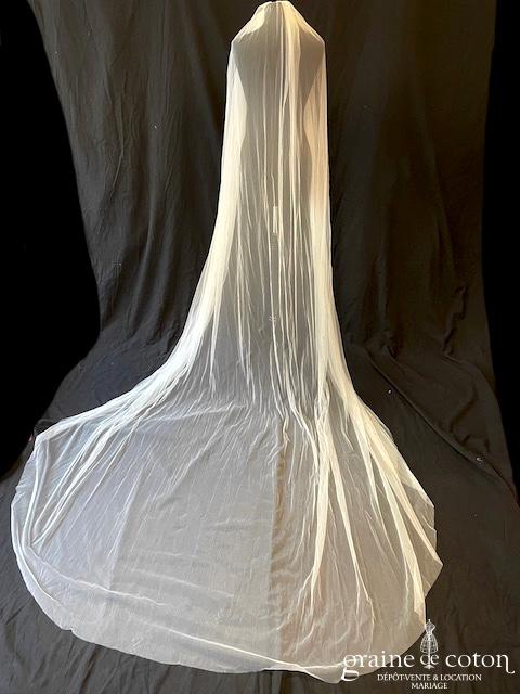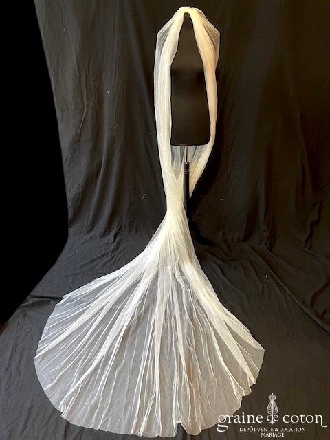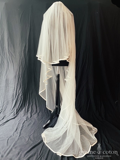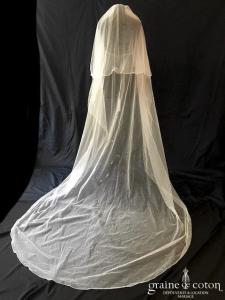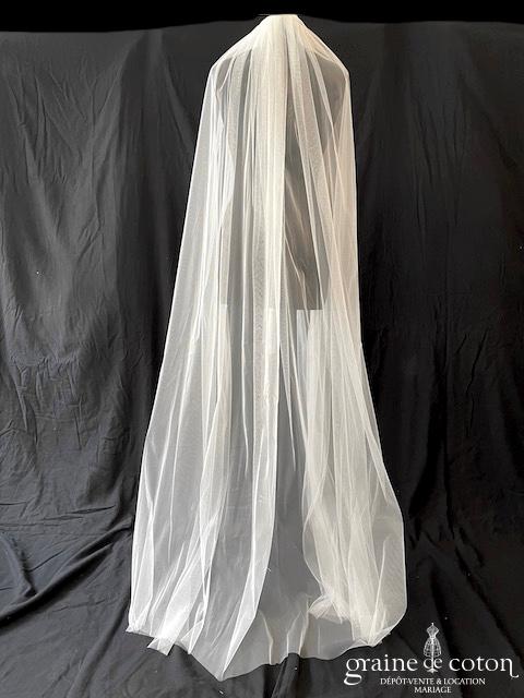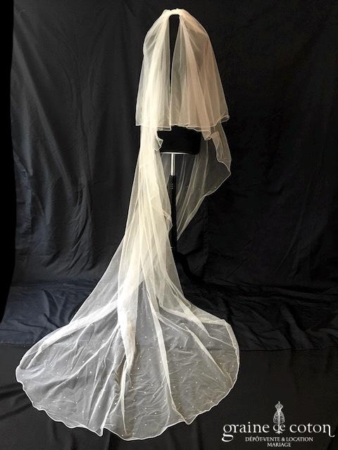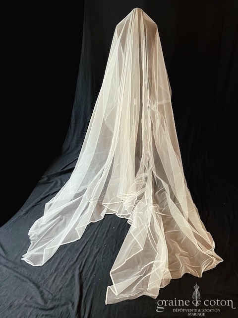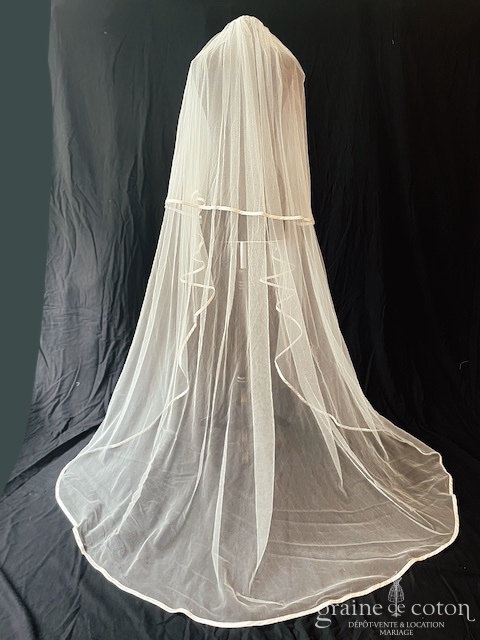 Création – Voile long de 300 cm en tulle souple ivoire clair bordé de perles