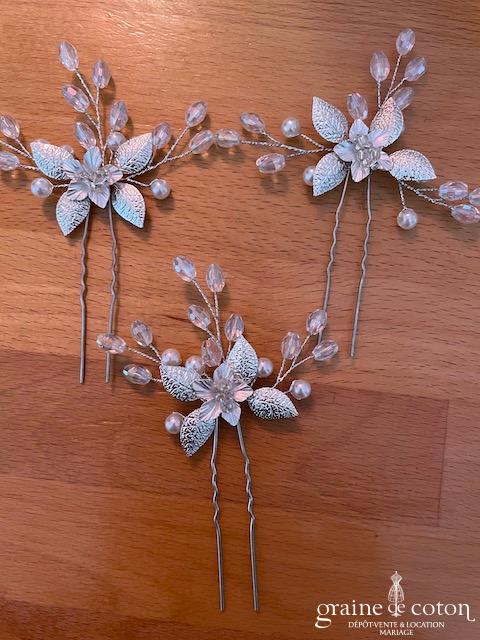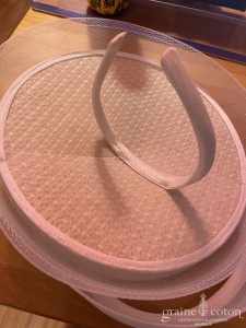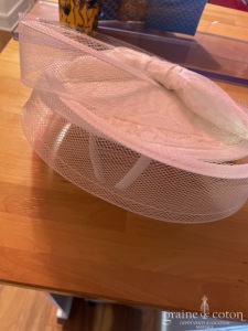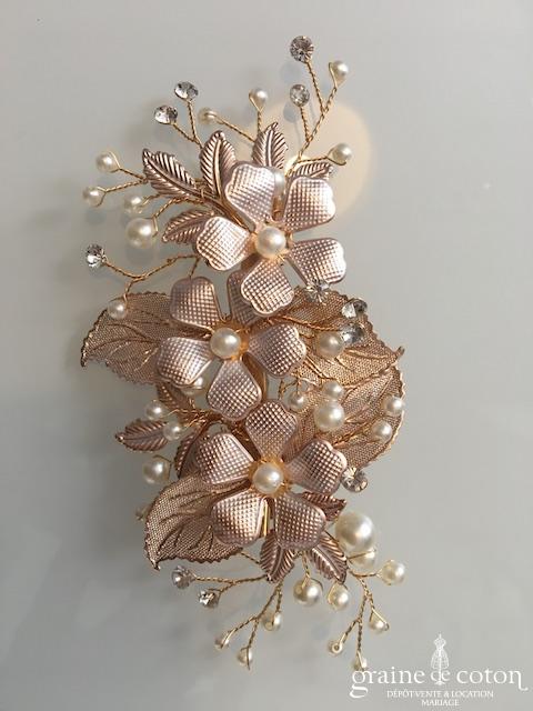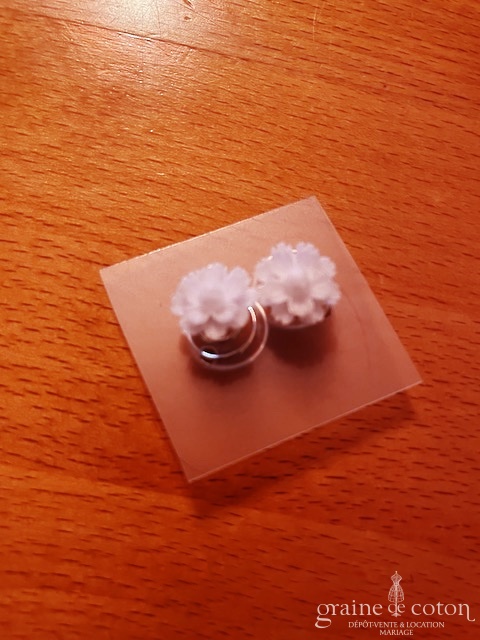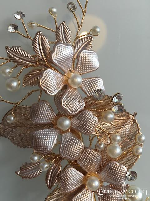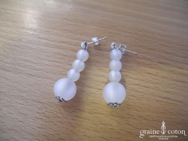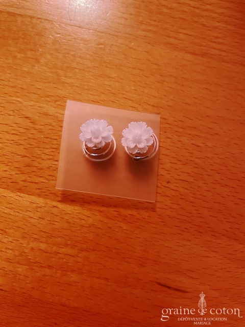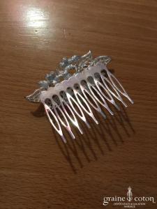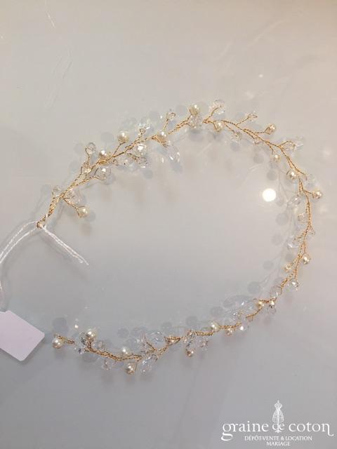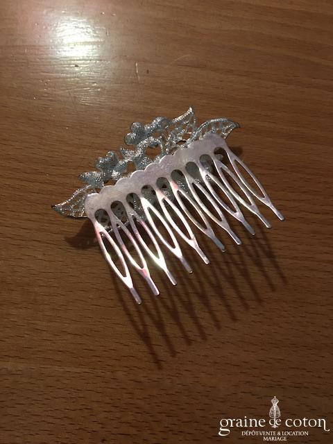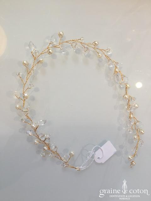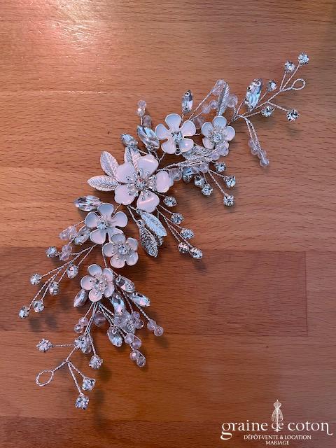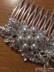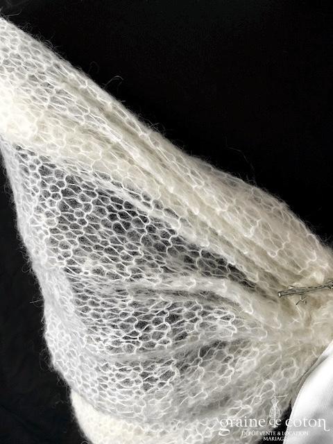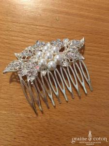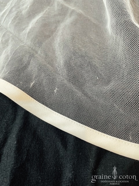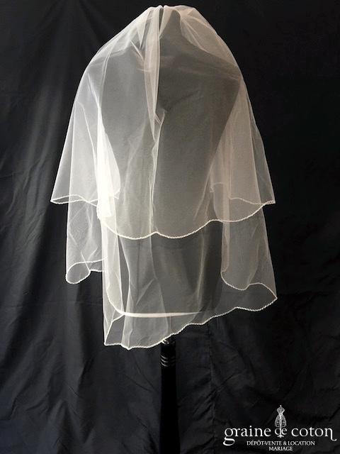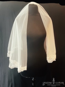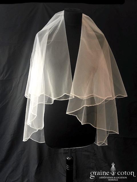Voile court en tulle ivoire clair bordé de perles. Monté sur peigne, avec rabat.