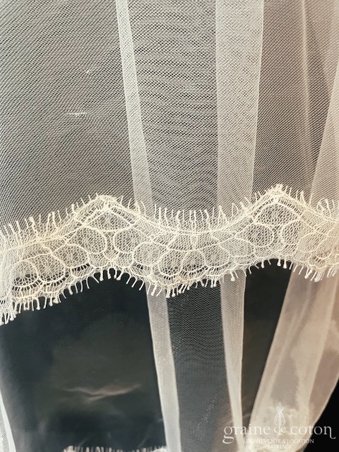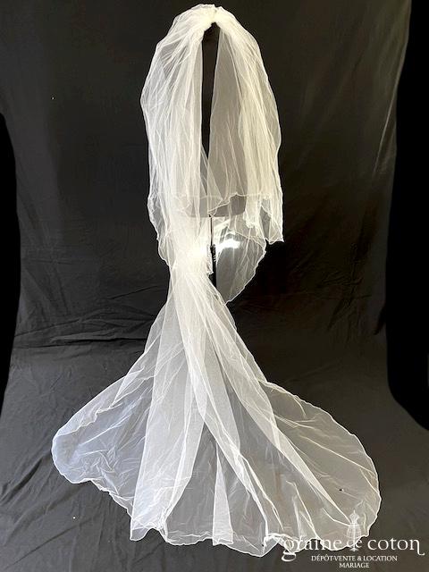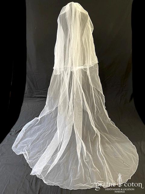 Voile long de 300 à 400 cm en tulle ivoire souple bordé de perles. Non monté sur peigne : il est donc possible de choisir de la porter avec ou …