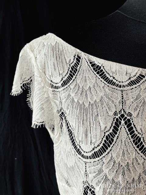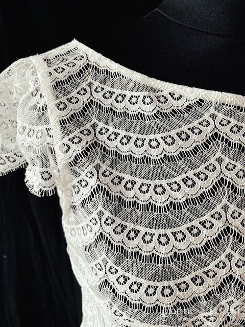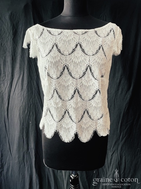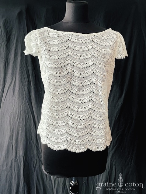Top en dentelle à petotes manches courtes, à porter sur une robe bustier ou bien en top avec une jupe et un débardeur ou body.