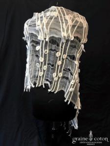 Création – Voile long de 300 à 400 cm en tulle ivoire souple bordé de perles