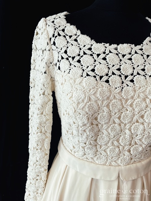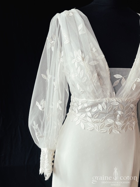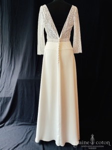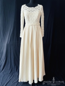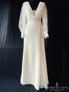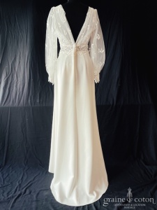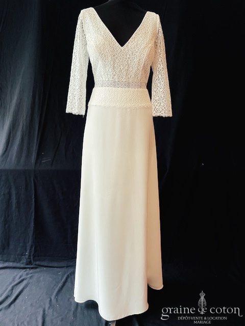 Dépôt de la création « Elena » d’Alina Marti en crêpe de soie et dentelle, bohème chic par excellence. Taille 38, référence 5749.
