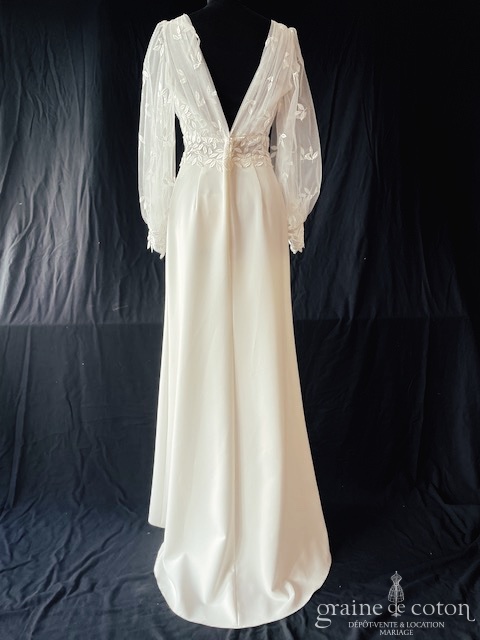 Dépôt de trois nouvelles robes pour clôre la journée : – la création « Vivi » de Stéphanie Wolff, en crêpe de soie ivoire et dentelle, magnifique dos nu en V. Taille …