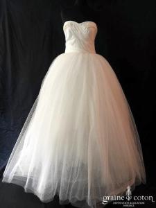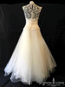 Robe une pièce champagne clair : bustier en dentelle avec bretelles en tulle fin (possibilité de le retirer : il a été ajouté au modèle original), taille haute cintrée. Jupe …