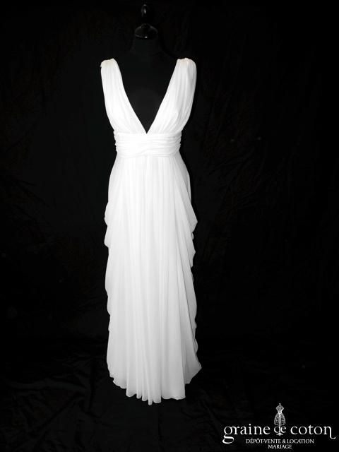Robe longue blanche décolleté carré, style Rome antique